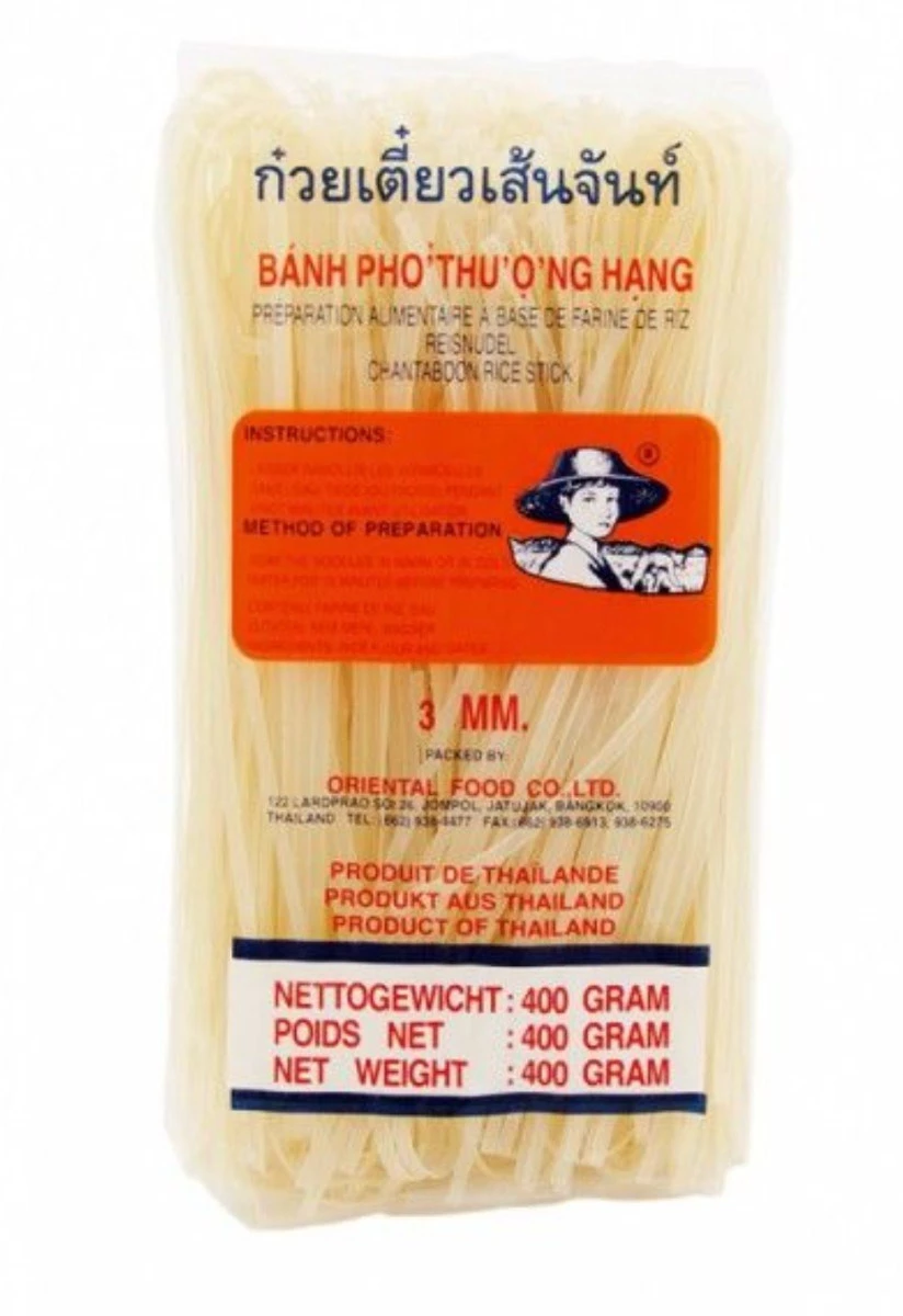 Zaletą makaronu ryżowego jest to, że nie wymaga on gotowania. Makaron zalewamy wrzątkiem na czas 3-5 minut (w zależności od preferowanej twardości makaronu) i odcedzamy. Gotowe!