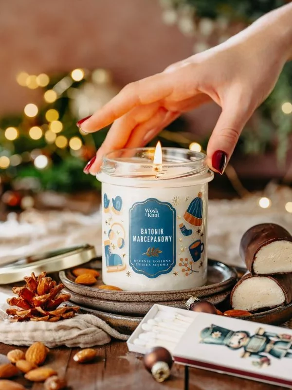 - Batonik Marcepanowy Świeca Sojowa to prawdziwa uczta dla zmysłów, otulająca pomieszczenia aromatem, który przywołuje wspomnienia słodkich chwil i świątecznych przysmaków. Rozpoczyna się od głębokiego, słodkiego marcepanu.