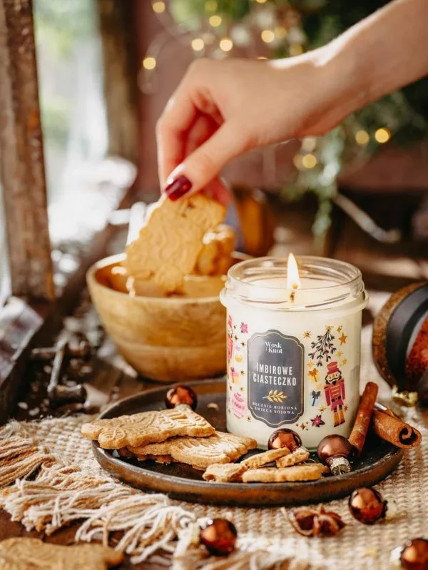 - Imbirowe Ciasteczko Świeca Sojowa otwierasz drzwi do kuchni pełnej świątecznych aromatów, gdzie powietrze jest nasączone zapachem świeżo upieczonych ciasteczek.