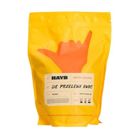 Kawa ziarnista jakości specialty wypalona w warszawskiej palarni HAYB. W opakowaniu znajdziesz ziarna o punktacji 86+ w 100% pochodzące z Rwandy. Kawa palona jasno, polecana szczególnie do kawiarni jako ziarno do gastronomicznych ekspresów przelewowych. Sprawdzi się również do dripa, Chemexa, AeroPressa, French Pressa, oraz innych alternatywnych metod parzenia. W filiżance można odnaleźć wysoką słodycz, która idzie ręka w rękę z przyjemną kwasowością – jak dojrzały, soczysty, letni owoc.