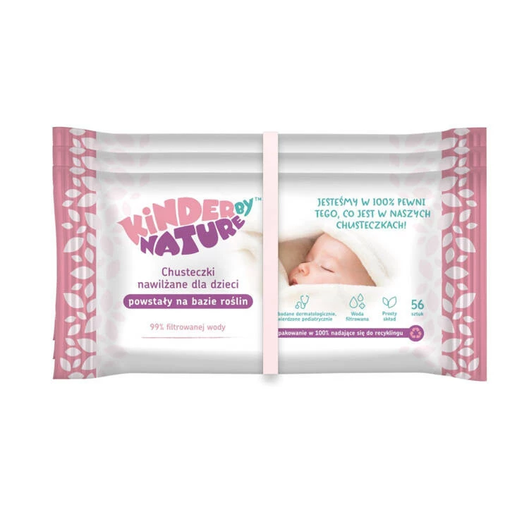Chusteczki nawilżane Kinder by Nature odpowiednie dla noworodków i dzieci 3 opakowania (168 szt.)