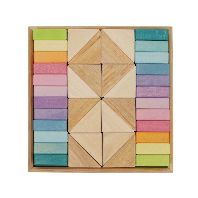 Pastel Duo to duży zestaw drewnianych klocków dla dzieci, który projektanci umieścili w kwadratowej, zgrabnej ramie. Większe stożkowe elementy są w kolorze naturalnym, natomiast mniejsze, prostokątne, są kolorowe. To komplet, który daje niezliczone możliwości konstruowania wymyślnych budowli. Pastelowe i naturalne figury mogą być podstawowym budulcem wieży, mostu, domu, ale równie dobrze posłużą za element uzupełniający scenografii. To wdzięczny materiał do zabawy, który uruchamia wyobraźnię dziecka i sprawia, że maluchy mają szansę wykazać się kreatywnością i zmysłem architektonicznym.