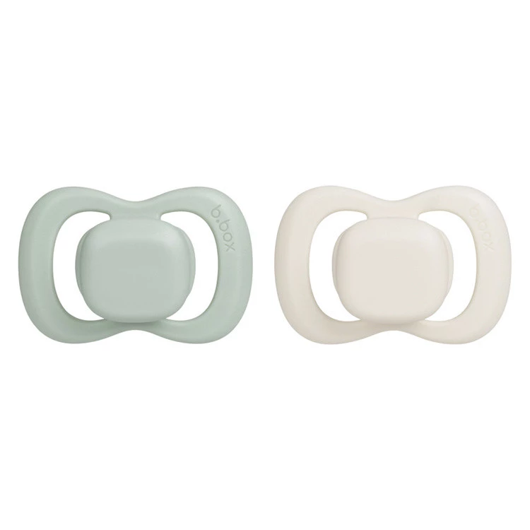 Smoczek dla niemowlaka 2 szt.– symetryczny smoczek silikonowy 6 mies.+ szałwia/wanilia, b.box