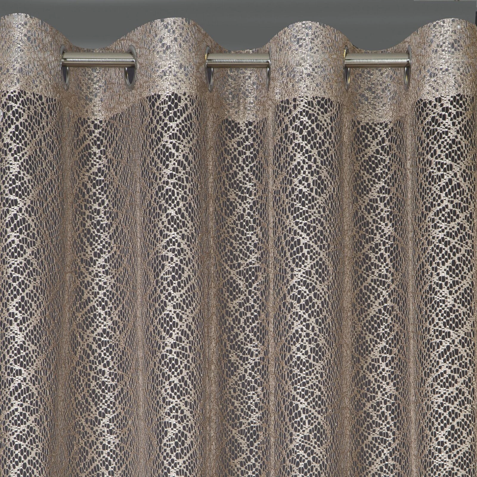 Nowoczesna firana z nieregularnej siateczki o subtelnym połysku i róznej wielkości oczek. Doskonała również w roli dekoracyjnej zasłony. Nie należy wybielać. szerokość: 140 cm, długość: 250 cm, kolor: beżowy, Gramatura: 120 GSM, Skład: 100% poliester