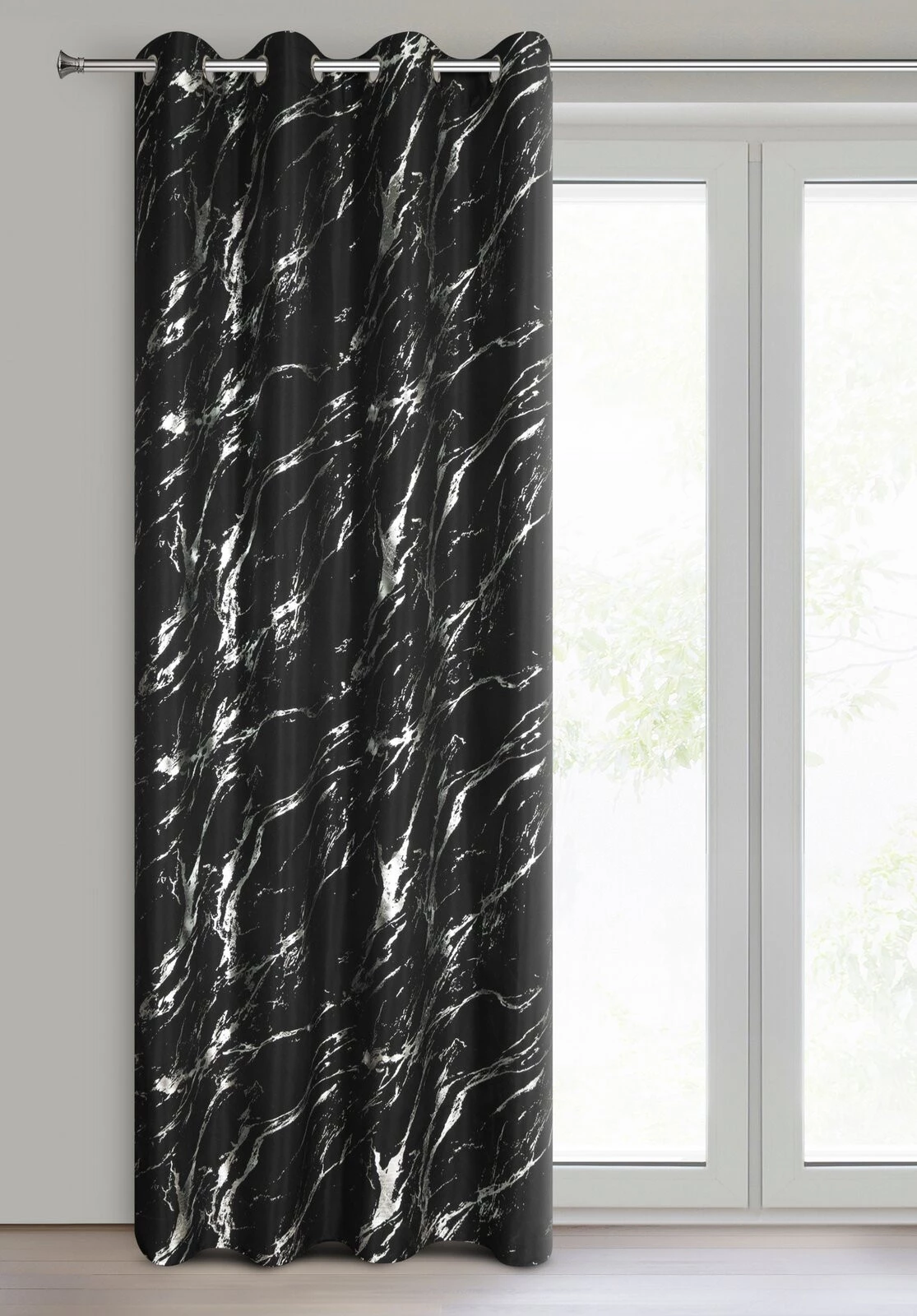 Zasłona gotowa z mikrofibry z błyszczącym nadrukiem szerokość: 140 cm, długość: 250 cm, kolor: czarny, Gramatura: 75 GSM, Skład: 100% poliester