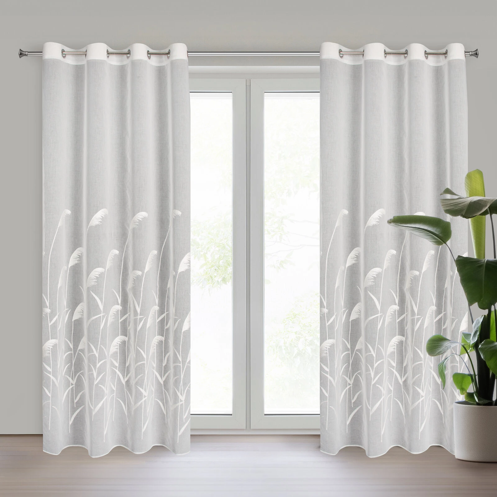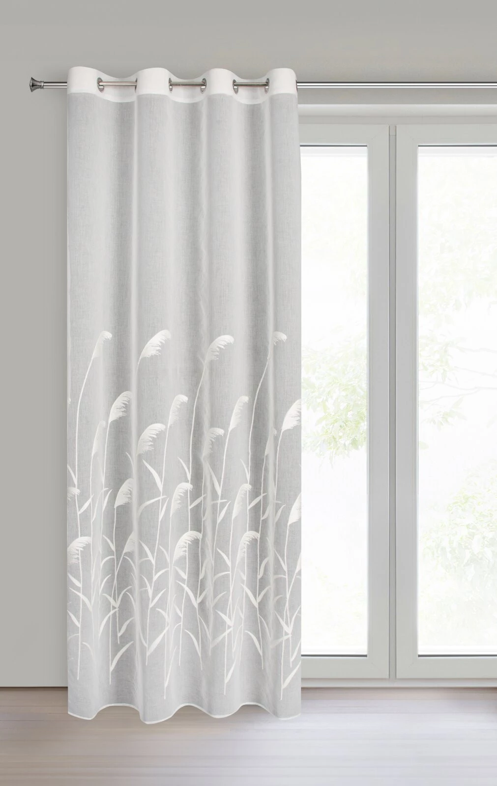 Firana gotowa zdobiona haftem szerokość: 140 cm, długość: 250 cm, kolor: kremowy, Skład: 100% poliester