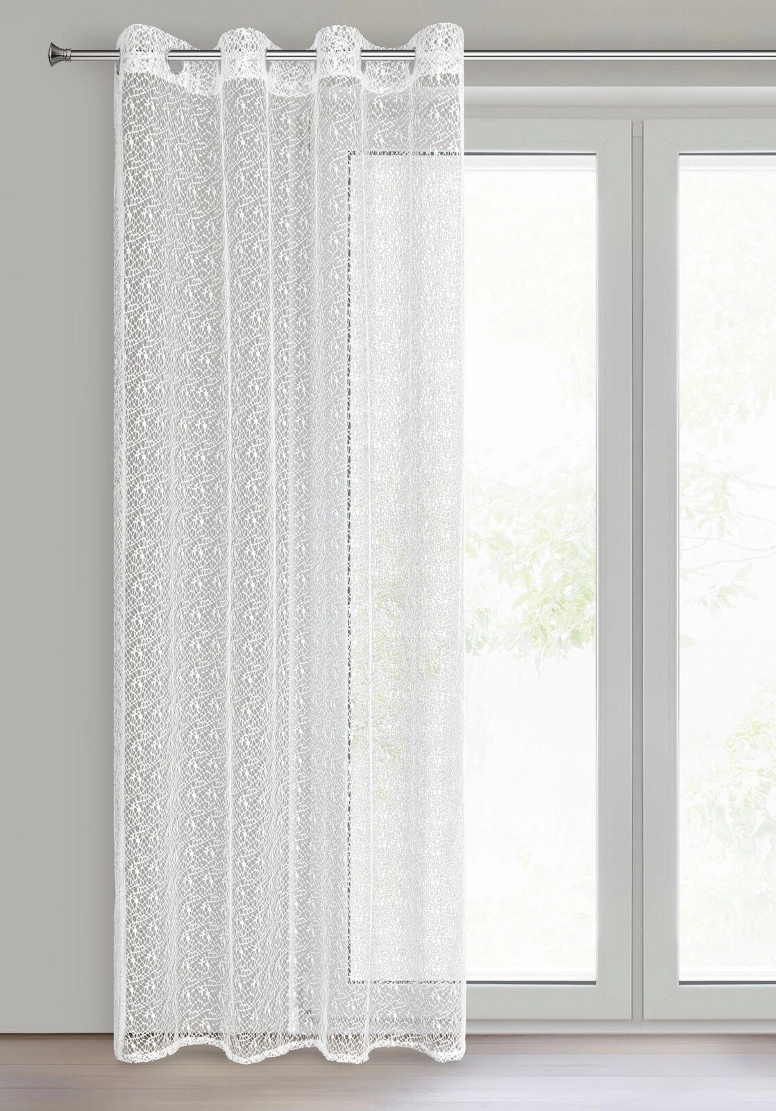 - Firana gotowa o strukturze siatki szerokość: 140 cm, długość: 250 cm, kolor: biały, Gramatura: 120 GSM, Skład: 100% poliester