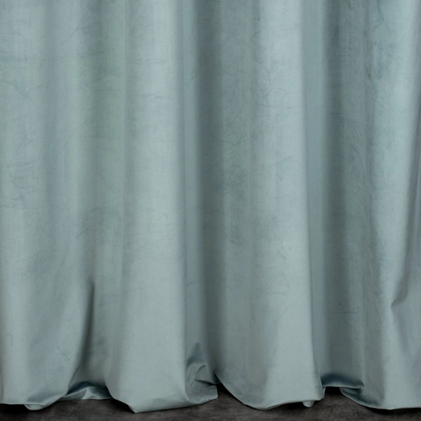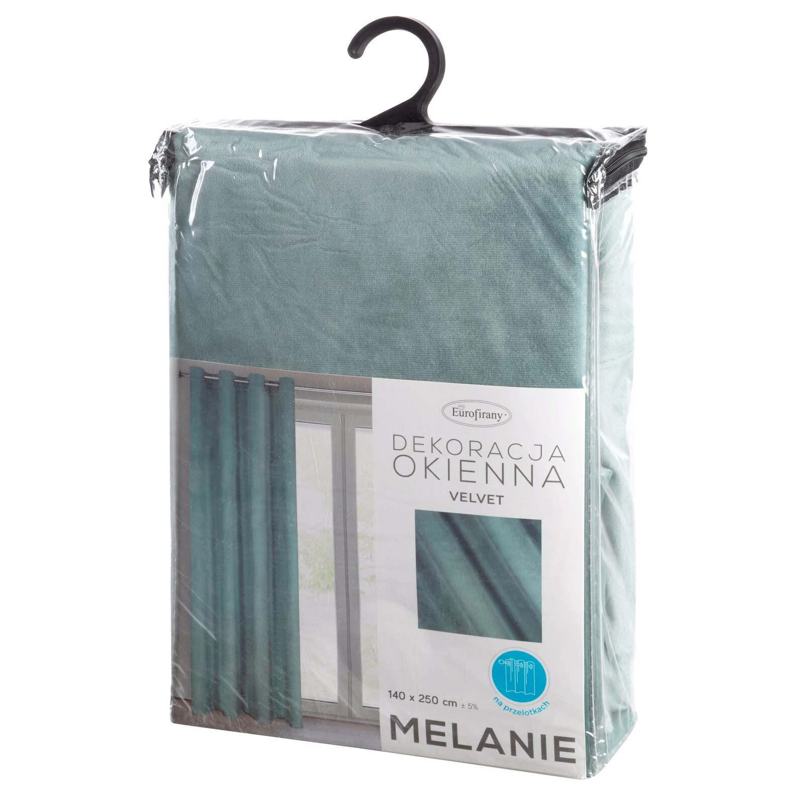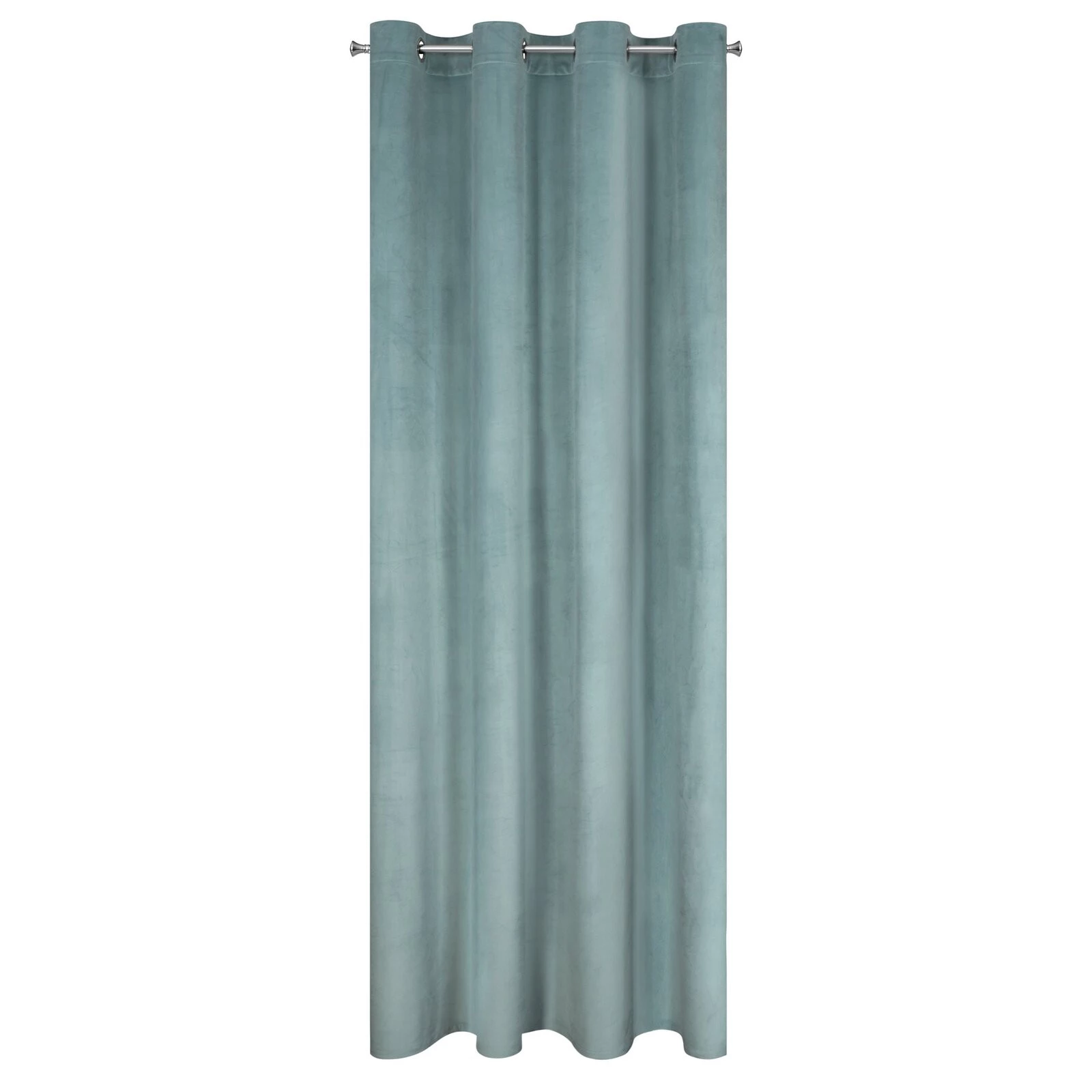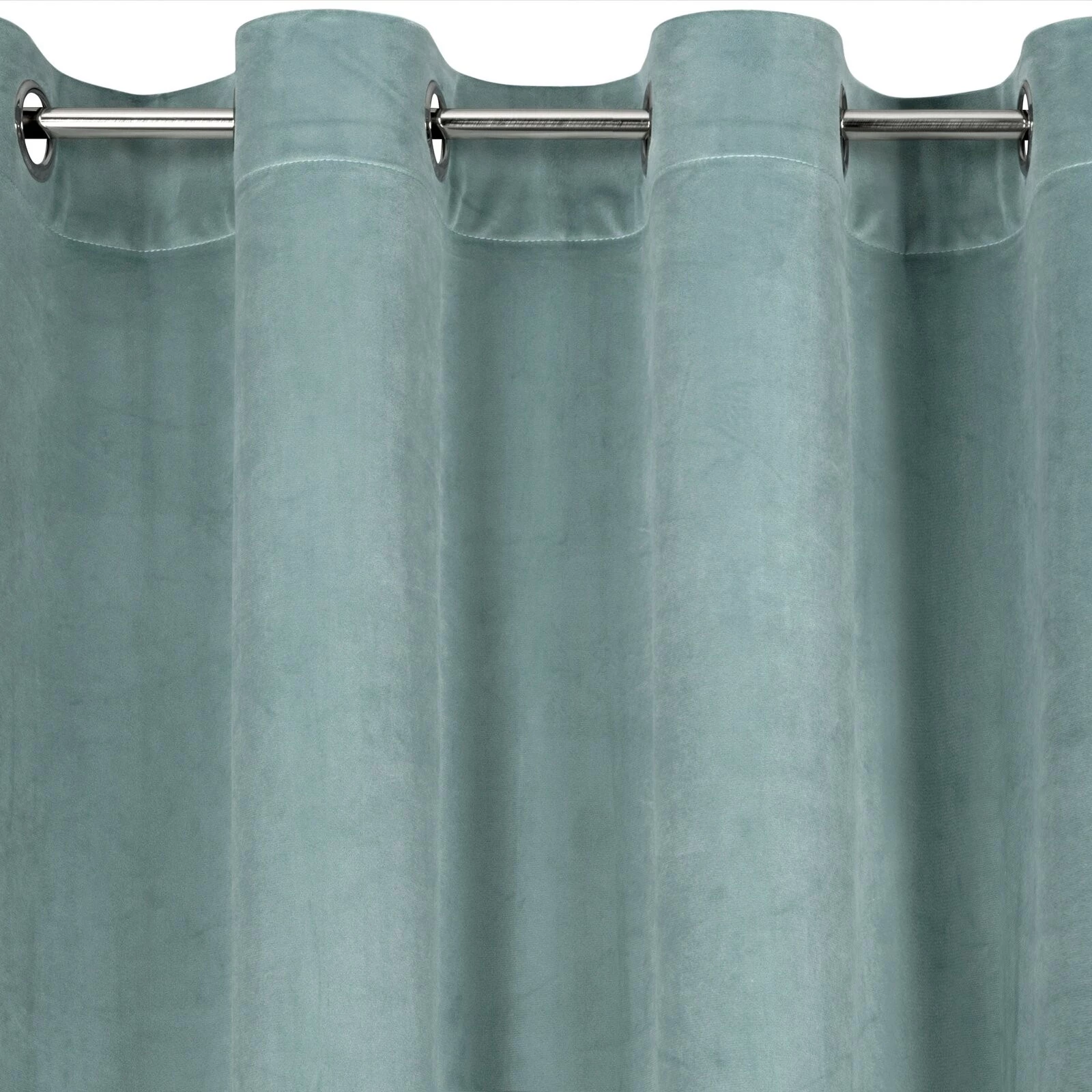 Miękka zasłona z welwetu o matowym wykończeniu. Mięsista tkanina o średnich właściwościach zaciemniających nadaje wnętrzu eleganckiego charakteru. szerokość: 140 cm, długość: 250 cm, kolor: szałwiowy, Gramatura: 200 GSM, Skład: 100% poliester