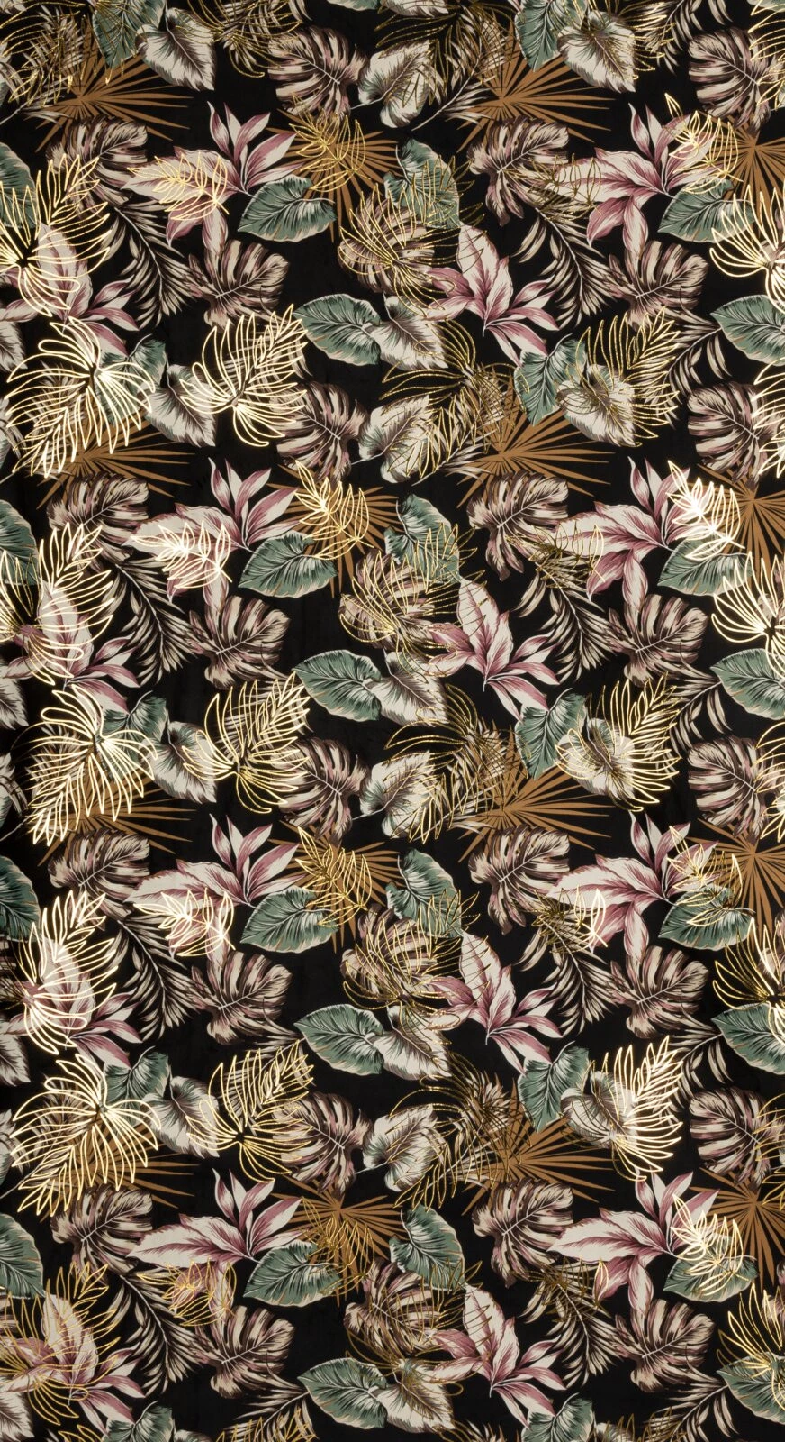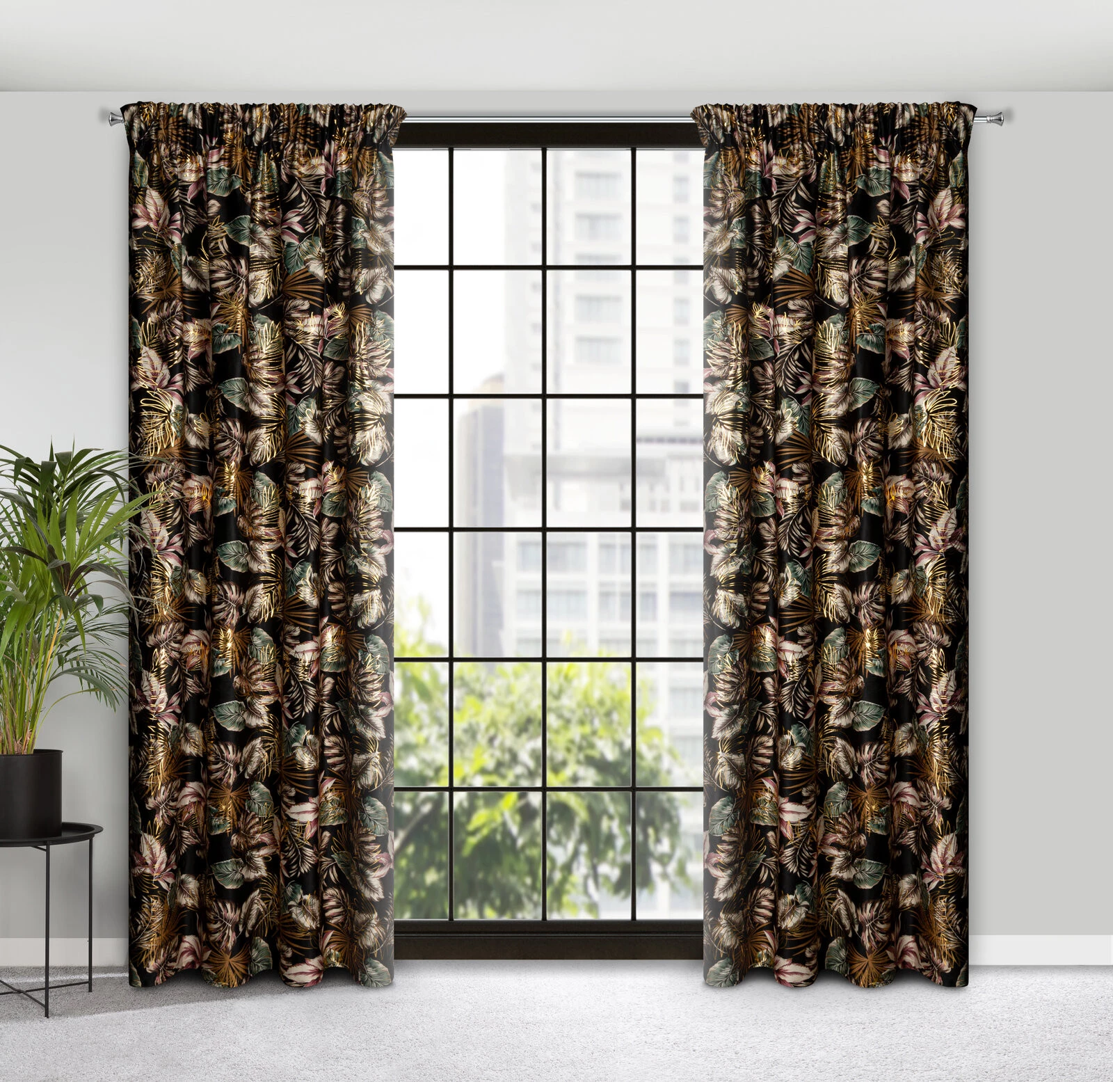 Zasłona welwetowa ze złotym nadrukiem szerokość: 140 cm, długość: 270 cm, kolor: czarny, Gramatura: 200 GSM, Skład: 100% poliester