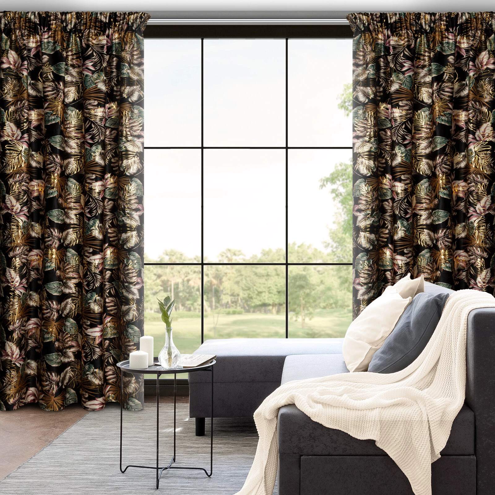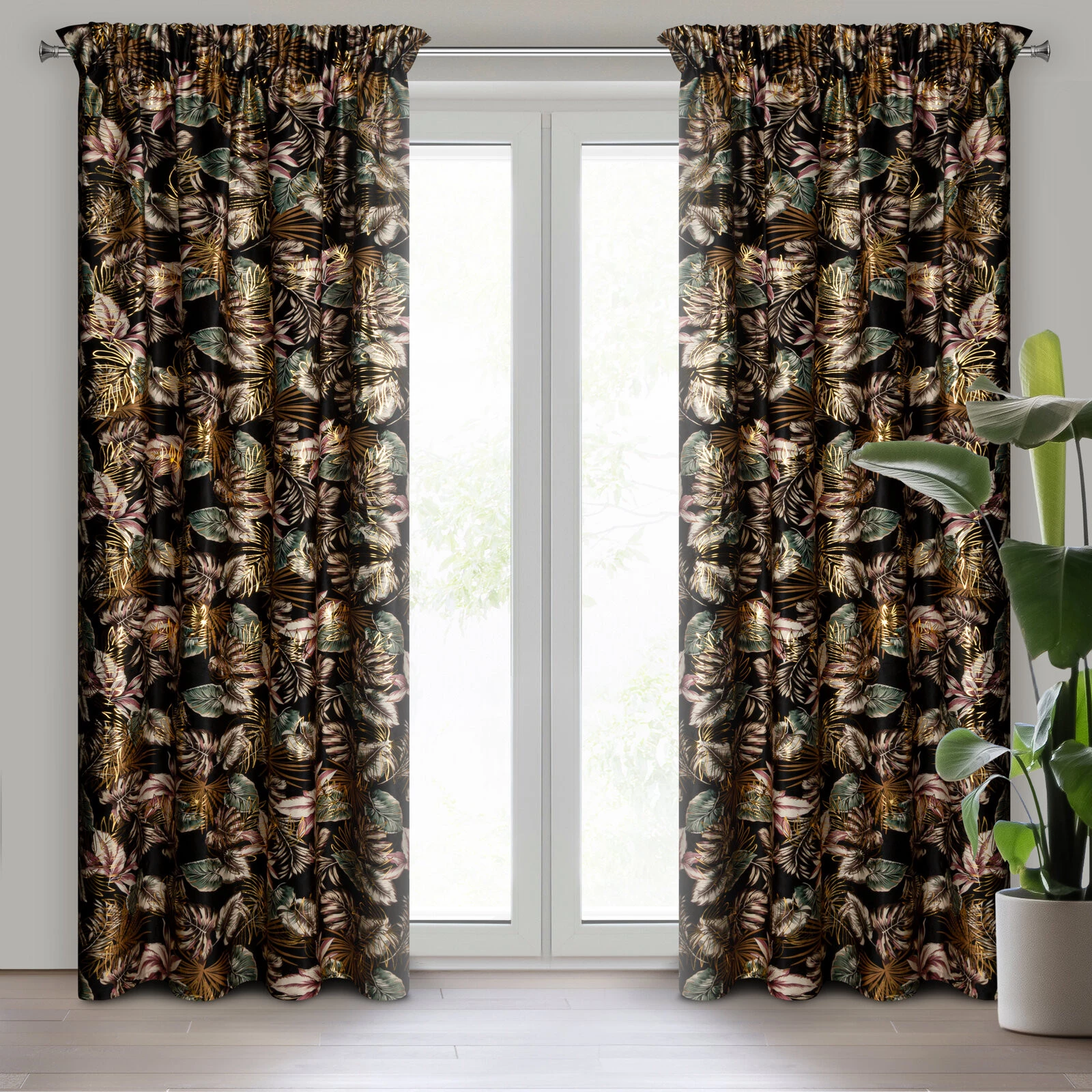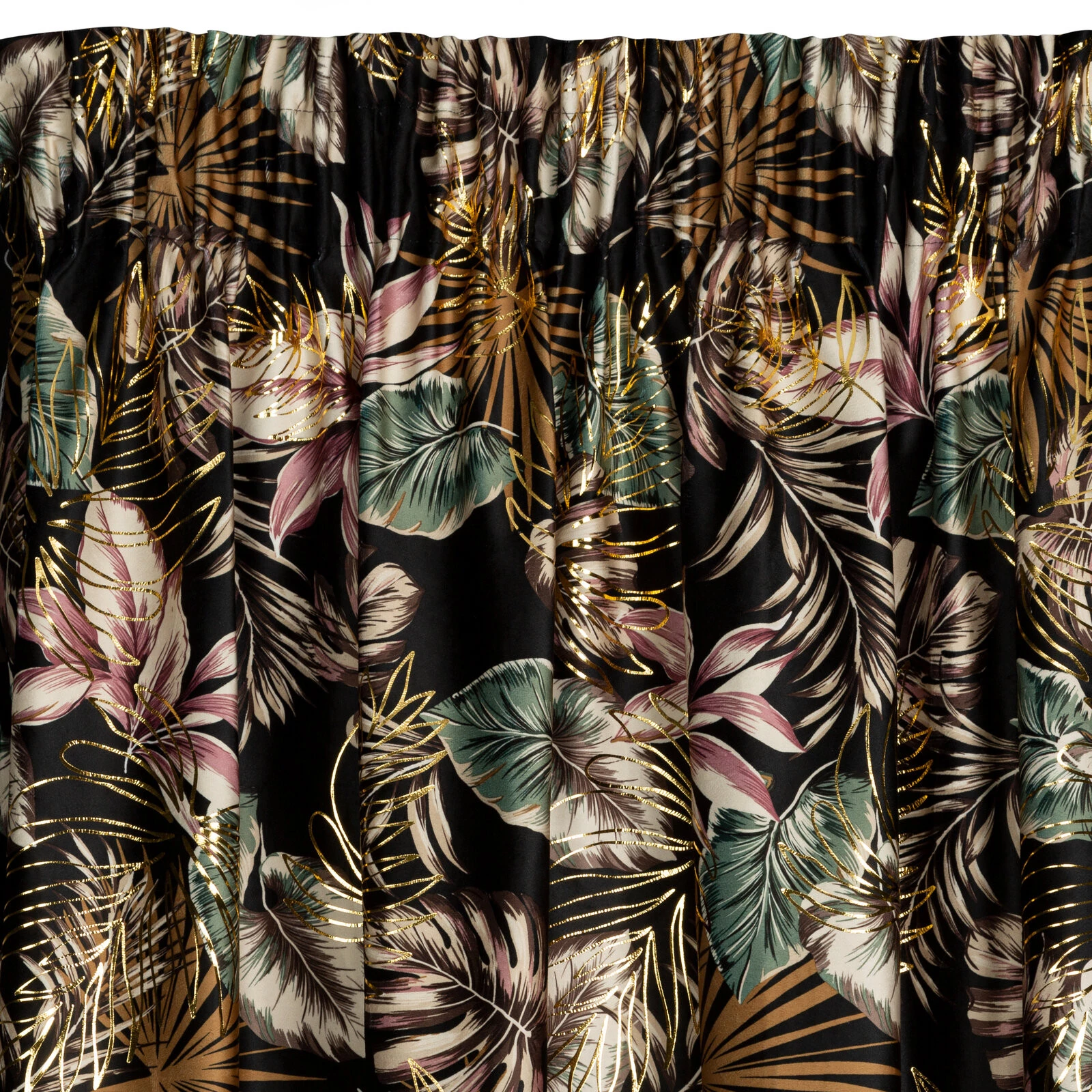 - Zasłona welwetowa ze złotym nadrukiem szerokość: 140 cm, długość: 270 cm, kolor: czarny, Gramatura: 200 GSM, Skład: 100% poliester