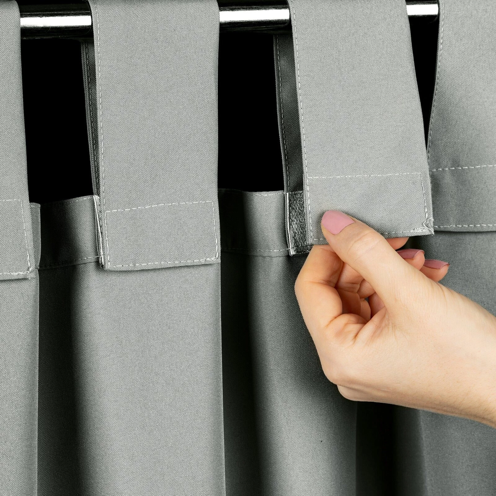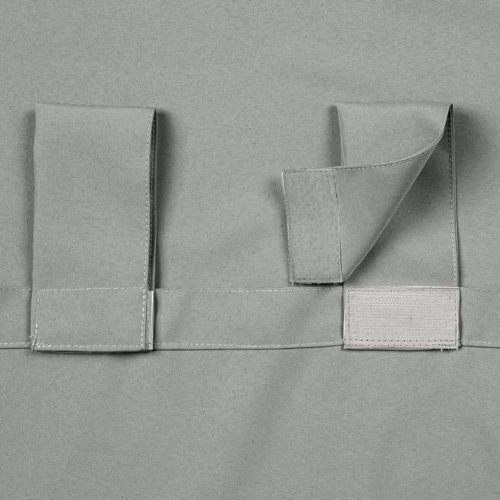 - Gotowa zasłona ogrodowa, wodoodporna, na szelkach zapinanymi na rzepy szerokość: 155 cm, długość: 200 cm, kolor: srebrny, Gramatura: 180 GSM, Skład: 100% poliester