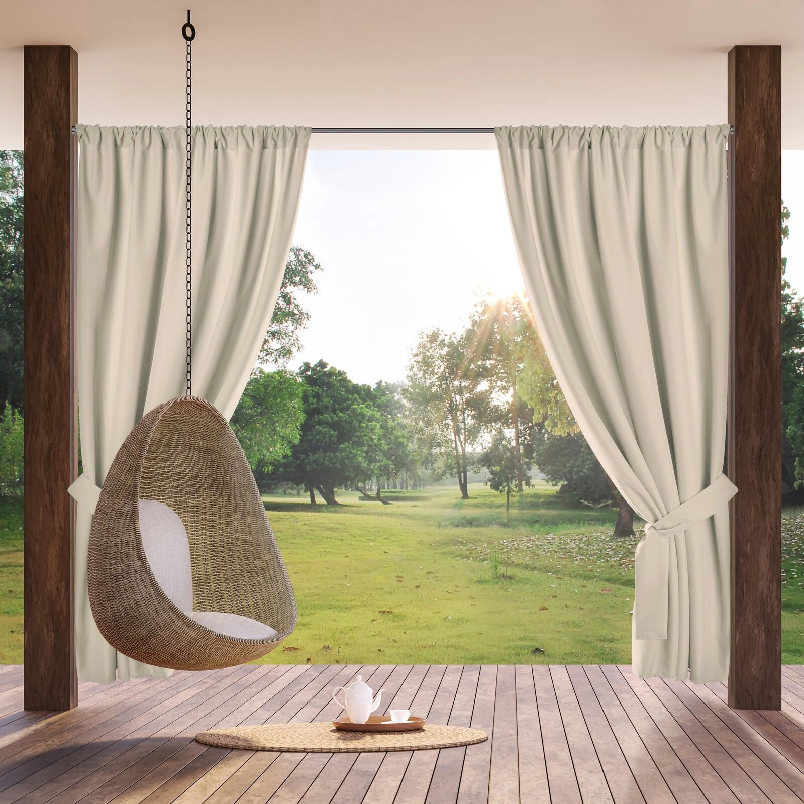 - Gotowa zasłona ogrodowa z tkaniny wodoodpornej, na tunelu szerokość: 155 cm, długość: 200 cm, kolor: jasnobeżowy, Gramatura: 180 GSM, Skład: 100% poliester