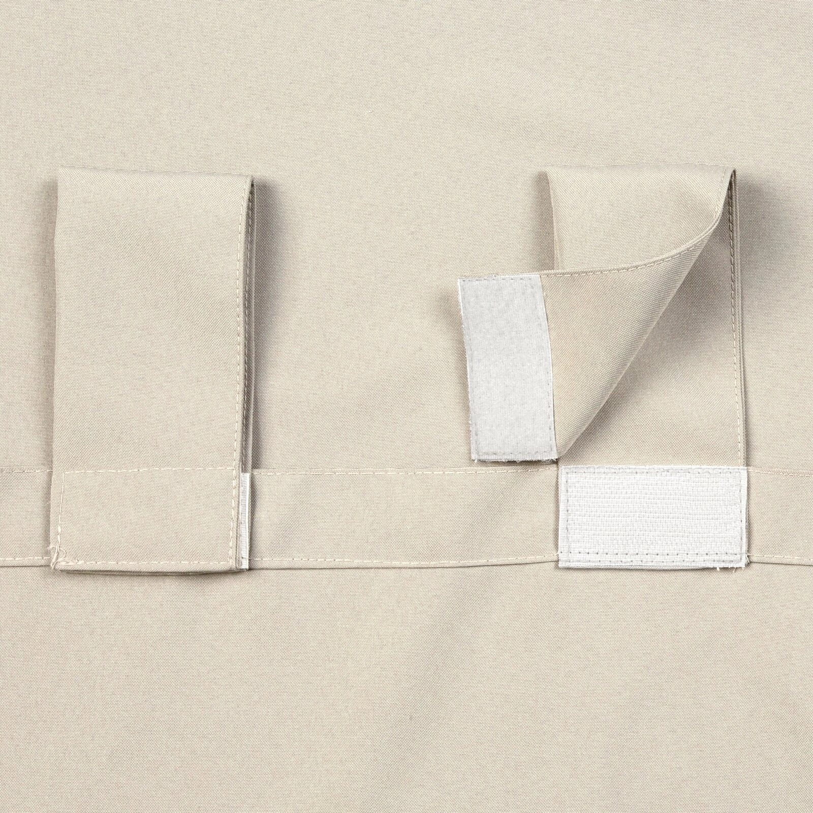 - Gotowa zasłona ogrodowa, wodoodporna, na szelkach zapinanymi na rzepy szerokość: 155 cm, długość: 200 cm, kolor: jasnobeżowy, Gramatura: 180 GSM, Skład: 100% poliester