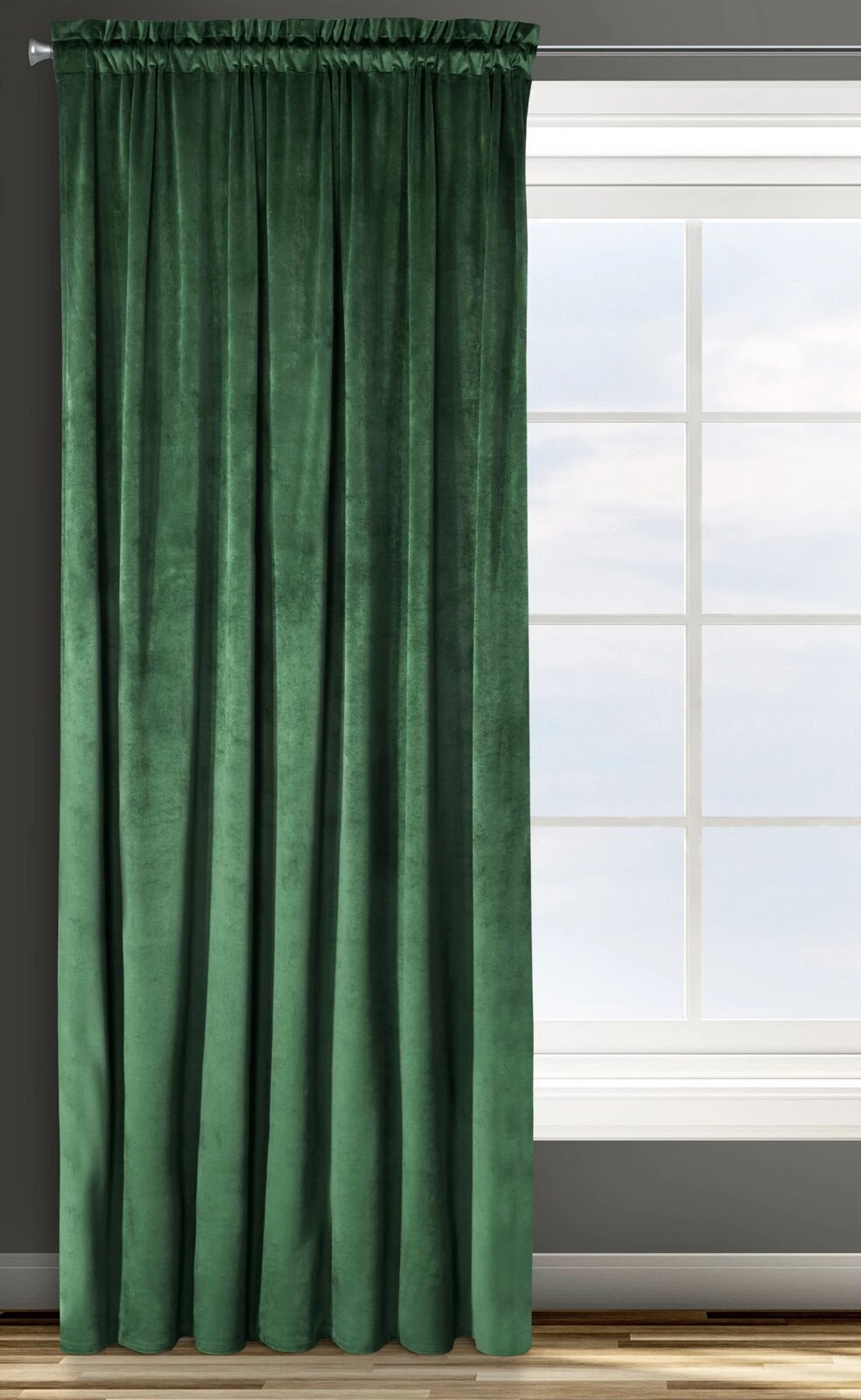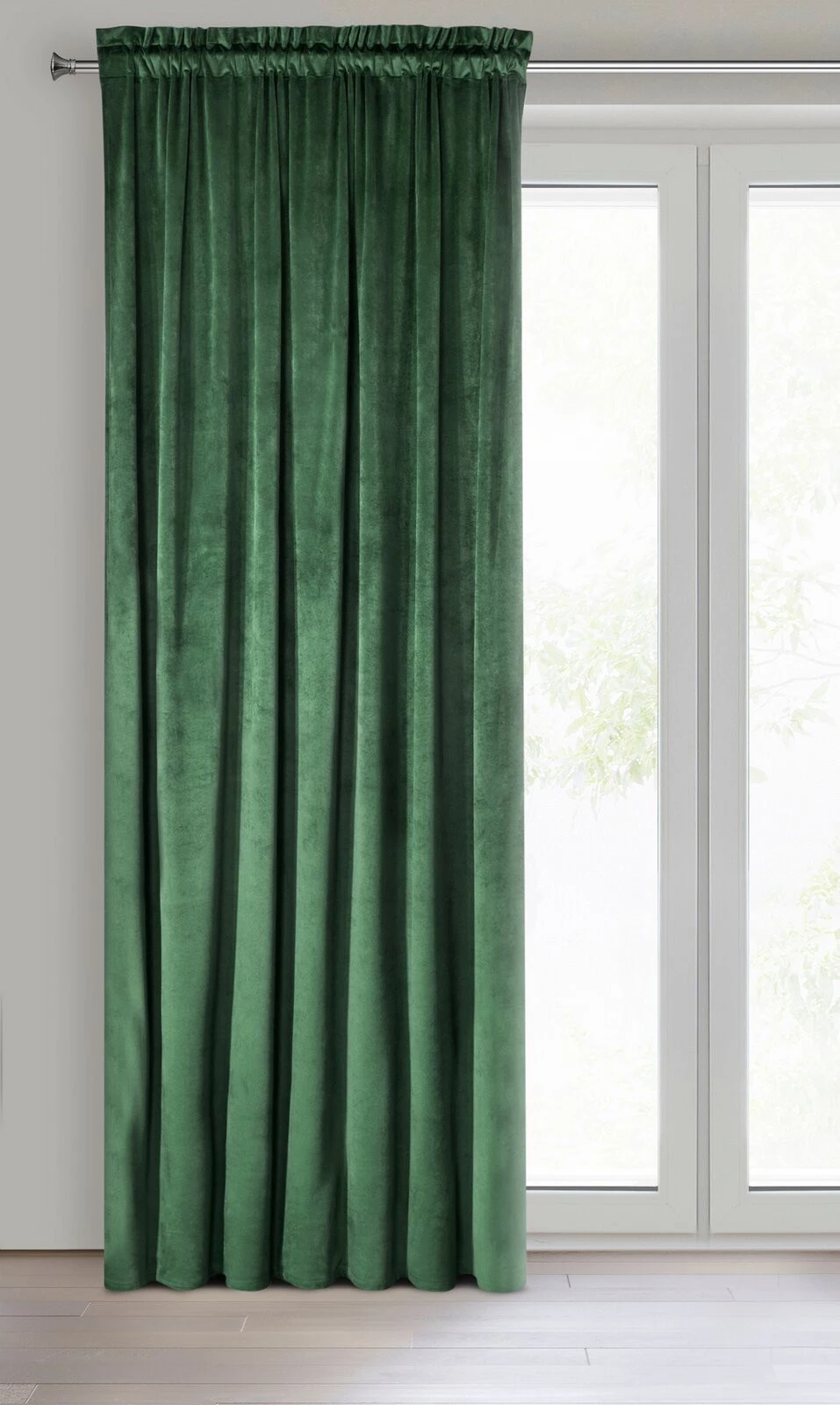 Zasłona welwetowa jednokolorowa szerokość: 140 cm, długość: 270 cm, kolor: ciemnozielony, Gramatura: 200 GSM, Skład: 100% poliester