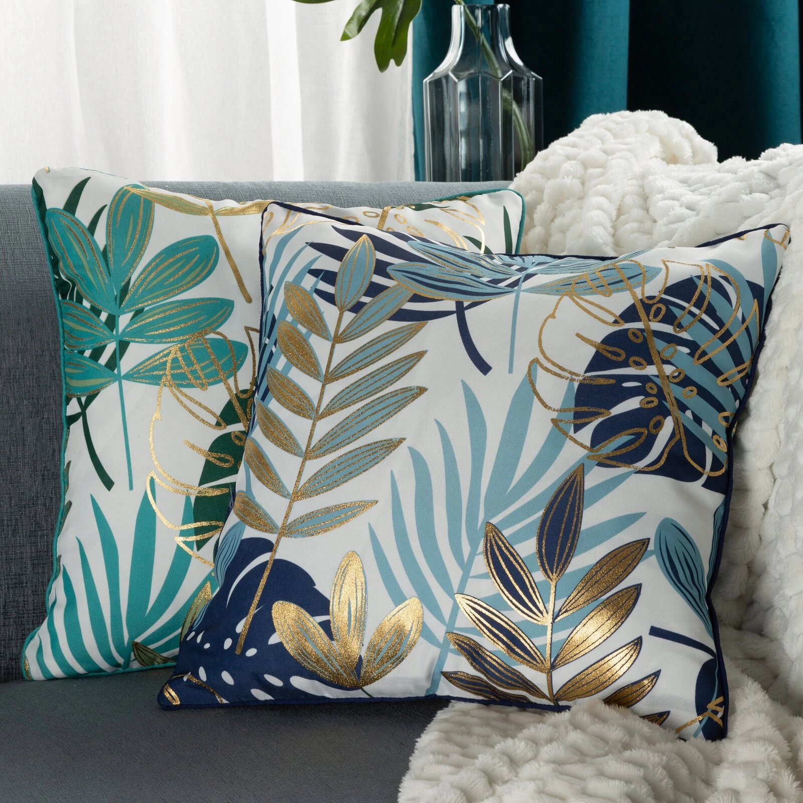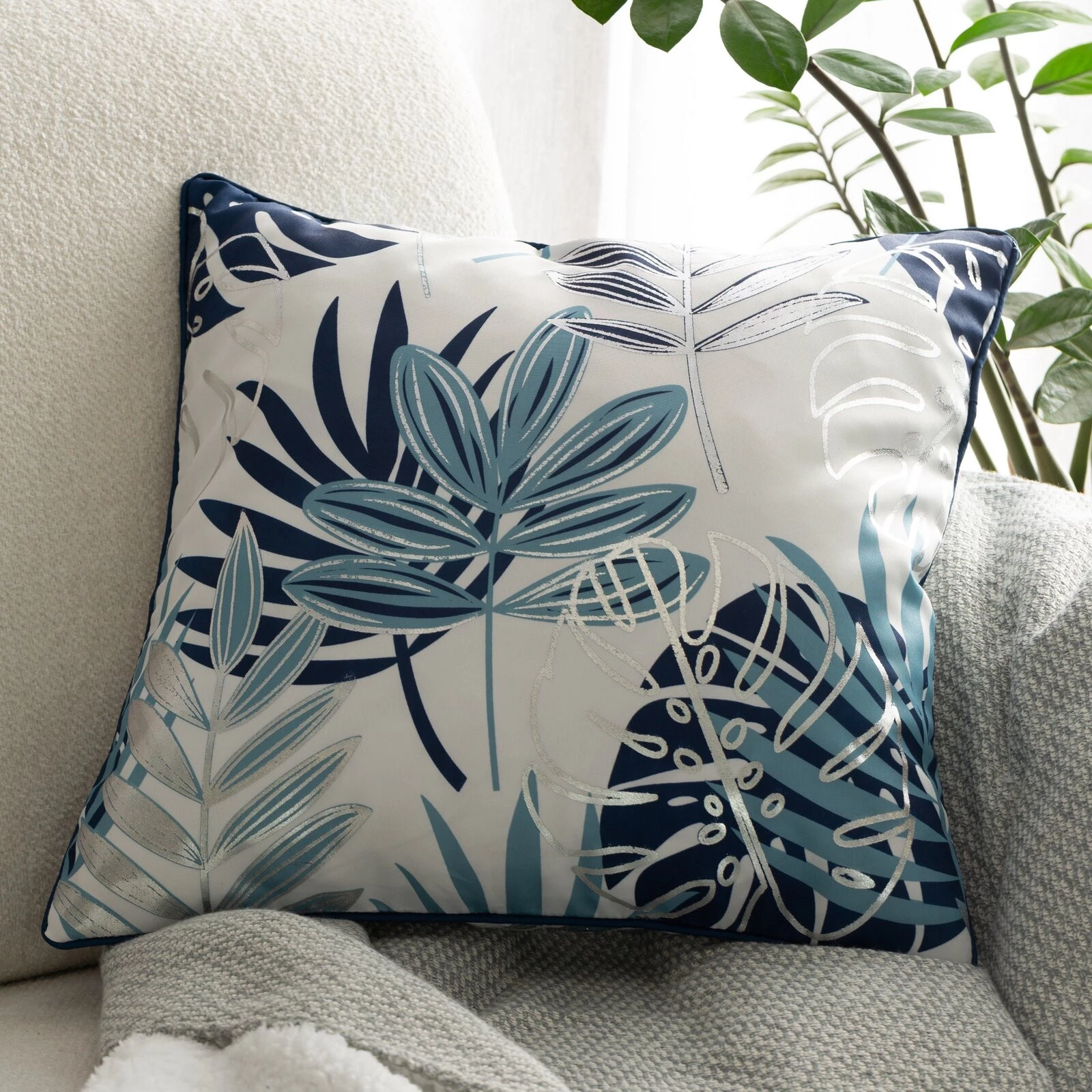 Poszewka z motywem botanicznym z błyszczącym nadrukiem szerokość: 45 cm, długość: 45 cm, kolor: granatowy, Gramatura: 135 GSM, Skład: 100% poliester