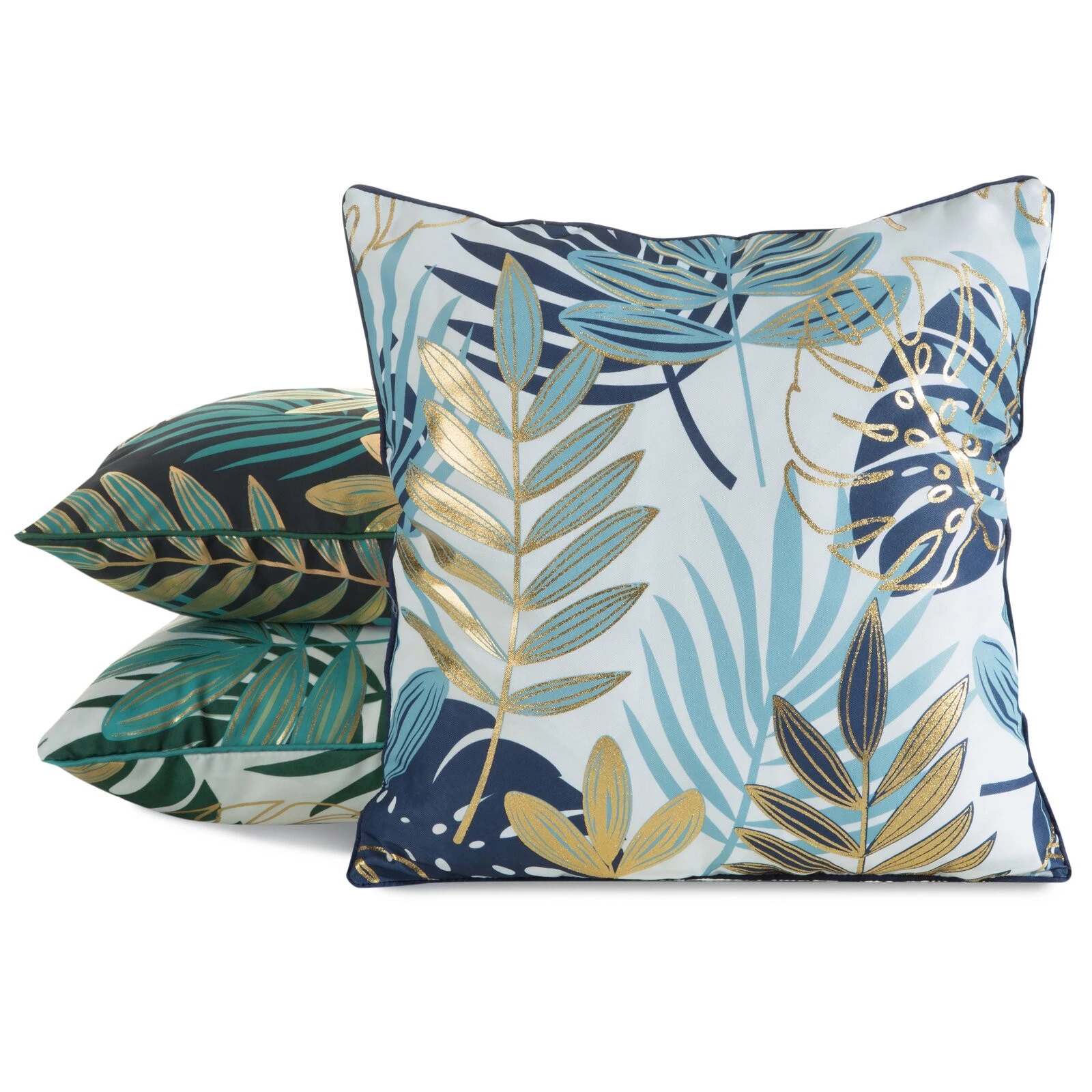 - Poszewka z motywem botanicznym z błyszczącym nadrukiem szerokość: 45 cm, długość: 45 cm, kolor: granatowy, Gramatura: 135 GSM, Skład: 100% poliester