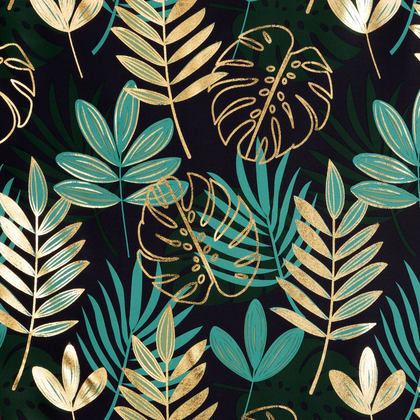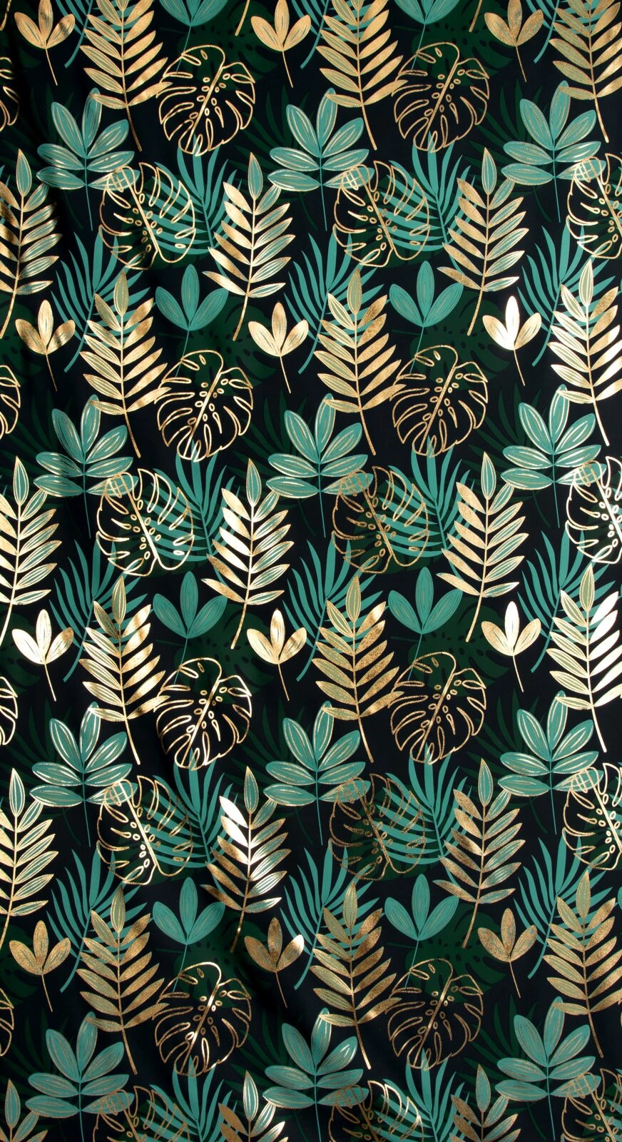 - Zasłona z motywem botanicznym z błyszczącym nadrukiem szerokość: 140 cm, długość: 250 cm, kolor: czarny, Gramatura: 135 GSM, Skład: 100% poliester