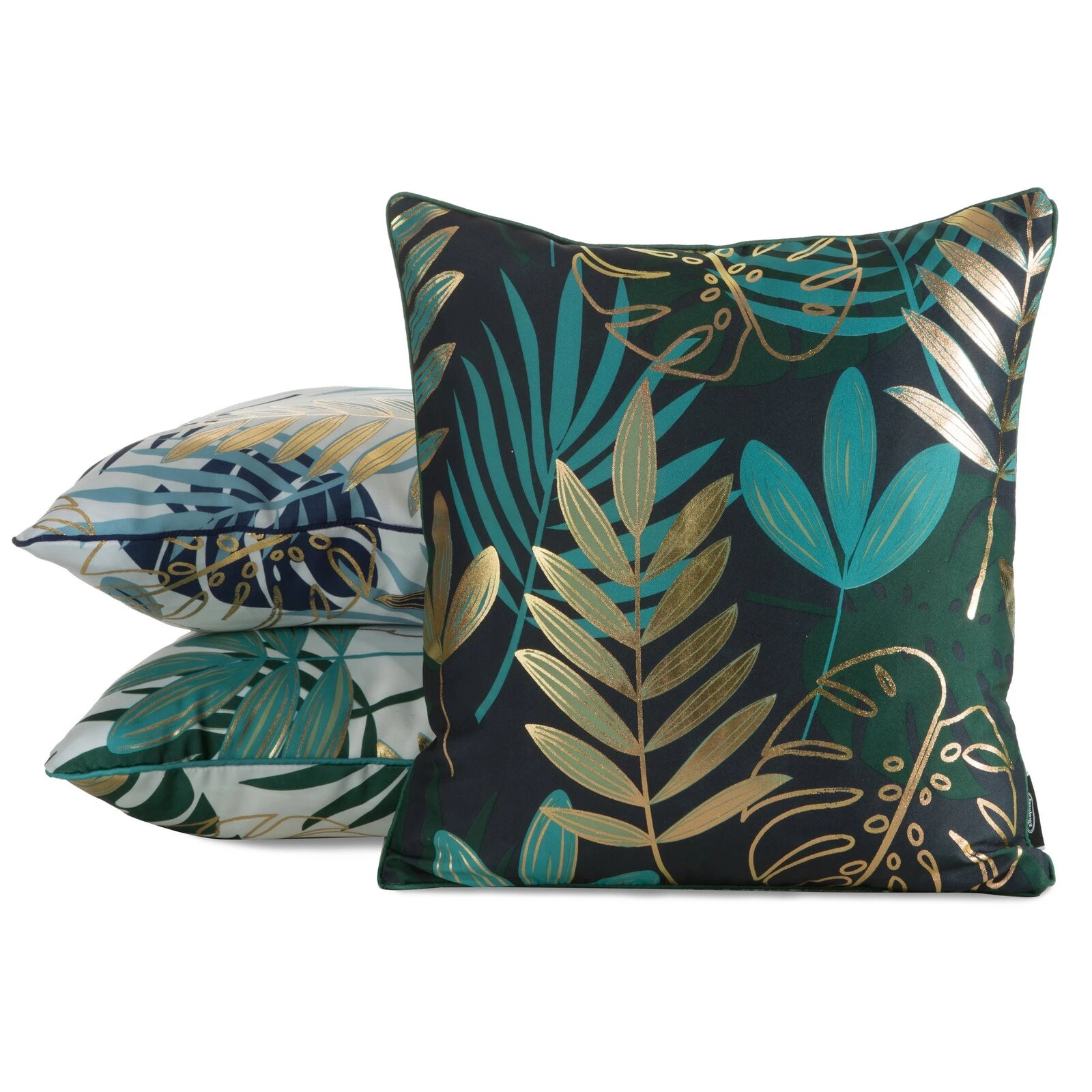 Poszewka z motywem botanicznym z błyszczącym nadrukiem szerokość: 45 cm, długość: 45 cm, kolor: ciemnozielony, Gramatura: 135 GSM, Skład: 100% poliester