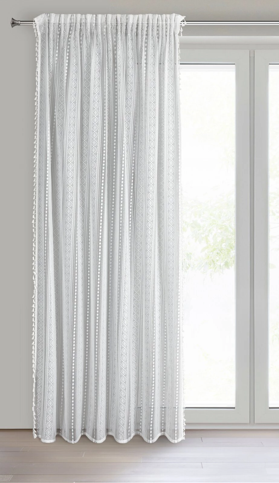 - Zasłona w stylu boho ozdobiona frędzlami szerokość: 140 cm, długość: 270 cm, kolor: biały, Gramatura: 90 GSM, Skład: 100% poliester