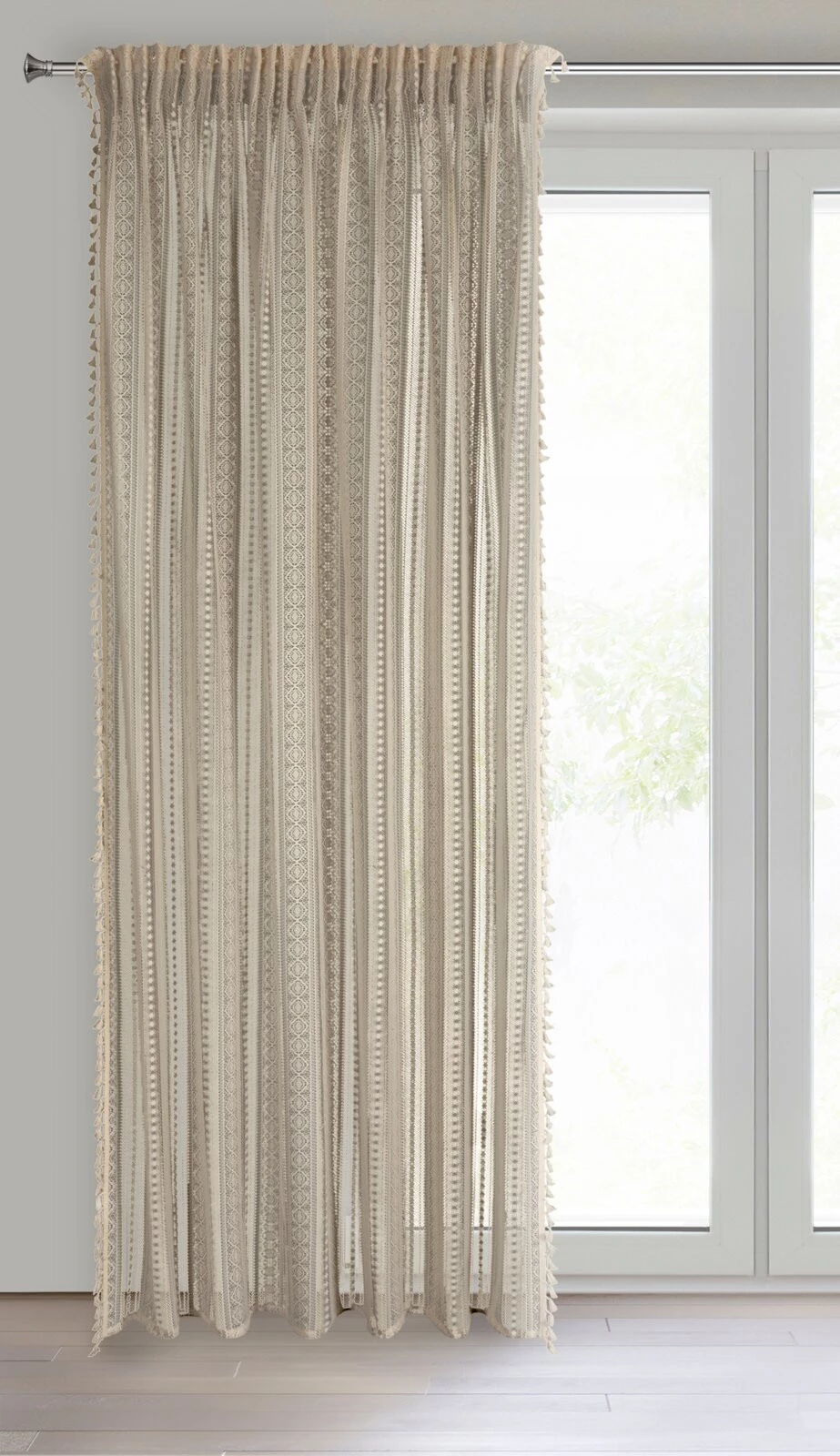 Zasłona w stylu boho ozdobiona frędzlami szerokość: 140 cm, długość: 270 cm, kolor: naturalny, Gramatura: 90 GSM, Skład: 100% poliester