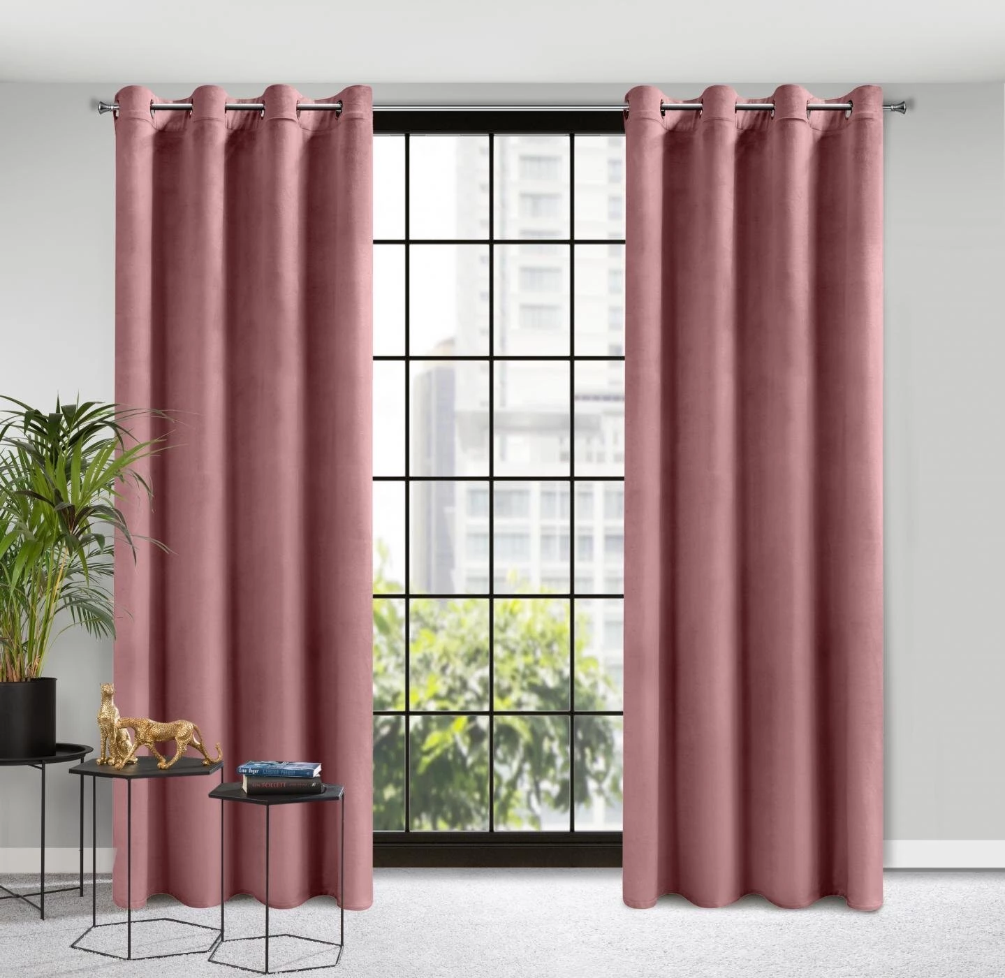 - Zasłona welwetowa jednokolorowa szerokość: 140 cm, długość: 250 cm, kolor: ciemnoróżowy, Gramatura: 200 GSM, Skład: 100% poliester