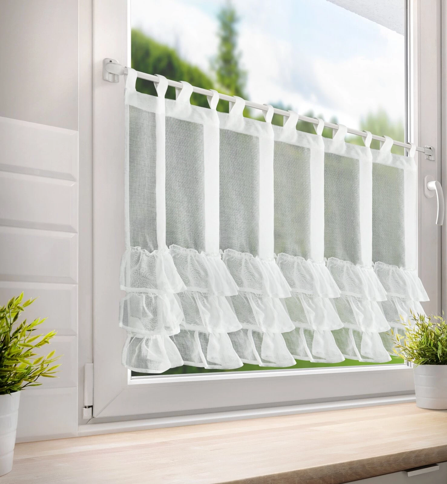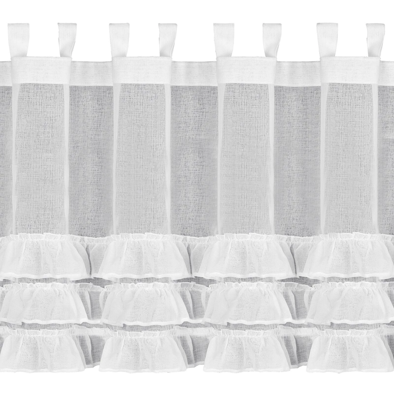 Zazdrostka gotowa zdobiona falbankami szerokość: 150 cm, długość: 70 cm, kolor: biały, Skład: 100% poliester