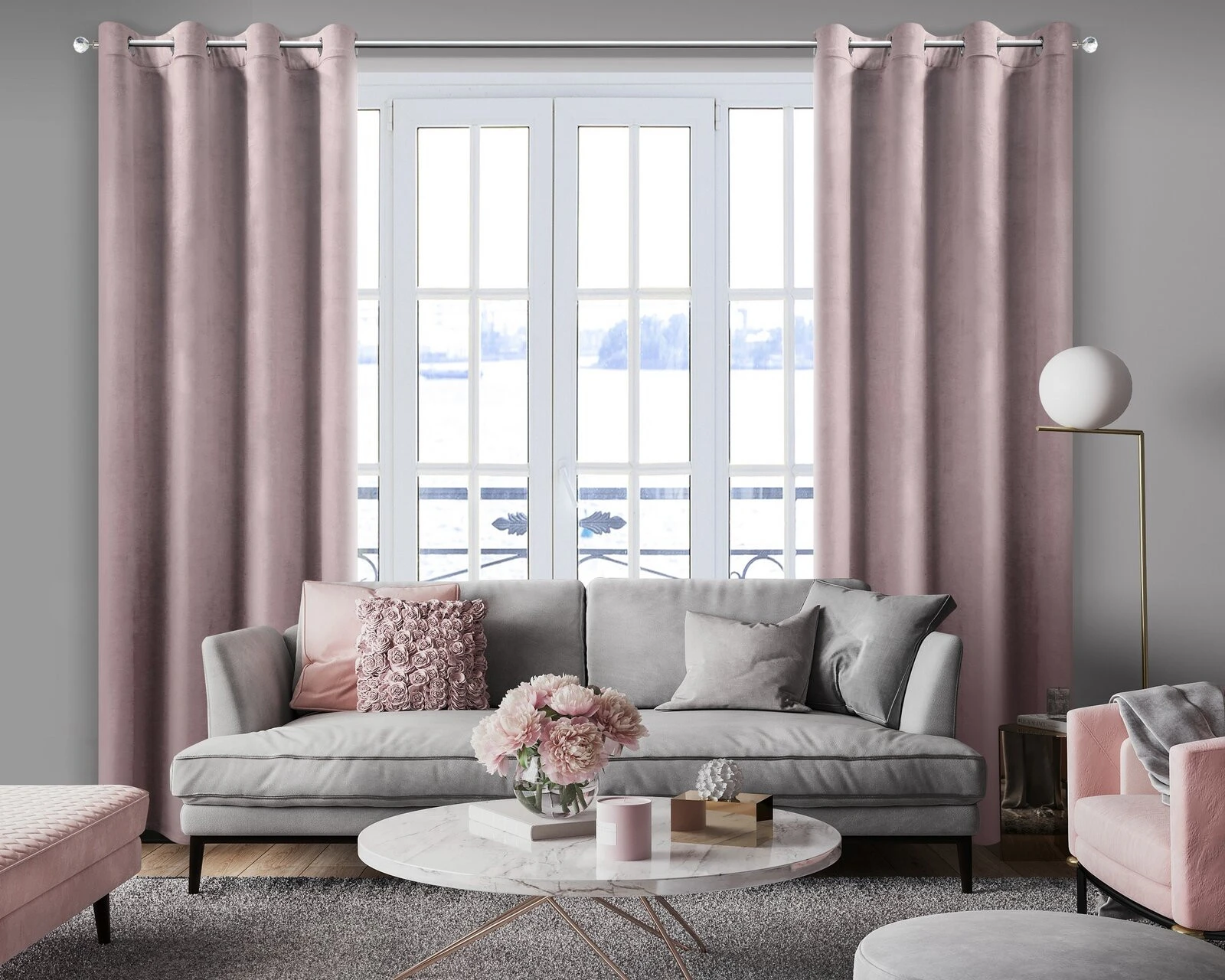 Miękka zasłona z welwetu o matowym wykończeniu. Mięsista tkanina o średnich właściwościach zaciemniających nadaje wnętrzu eleganckiego charakteru. szerokość: 140 cm, długość: 250 cm, kolor: pudrowy róż, Gramatura: 200 GSM, Skład: 100% poliester