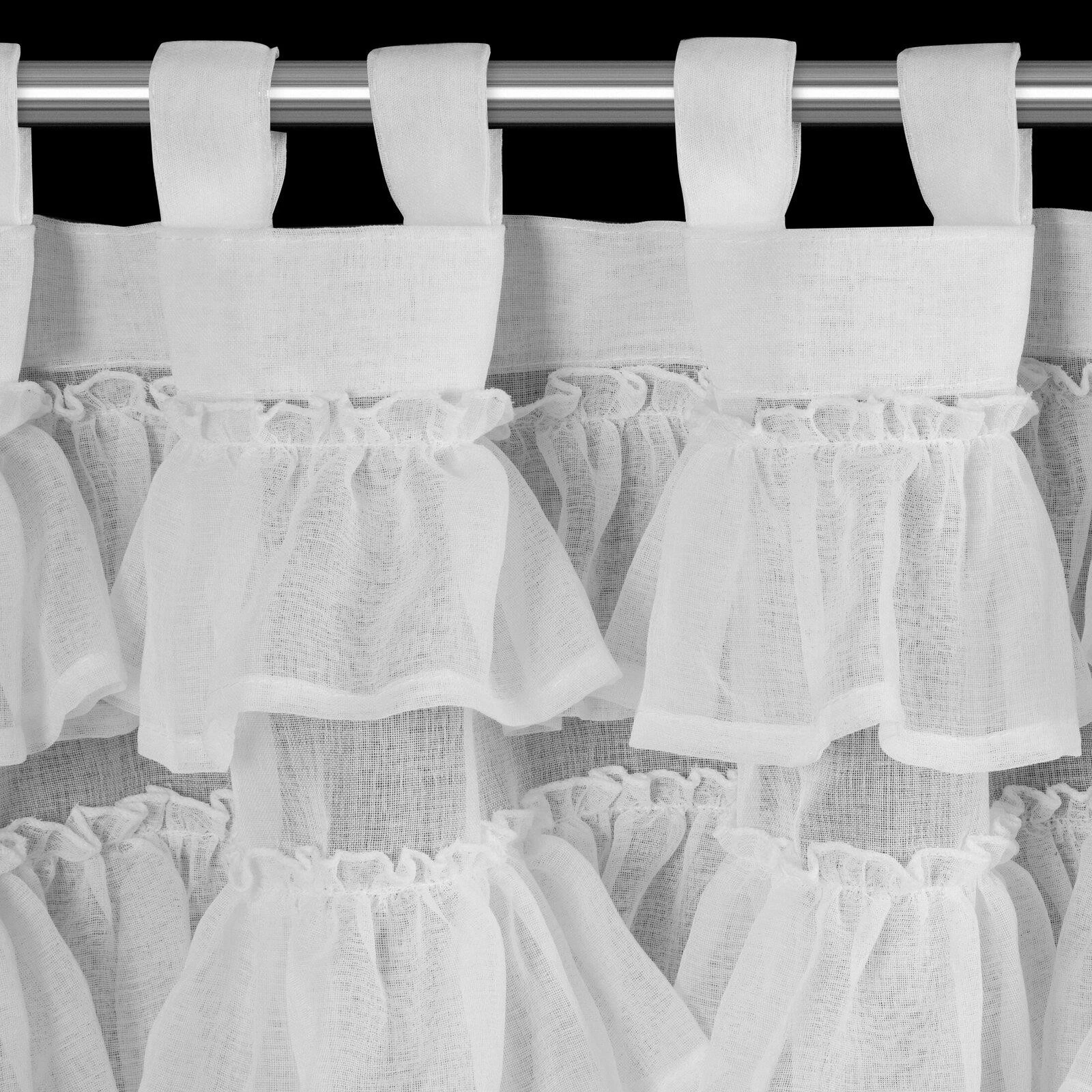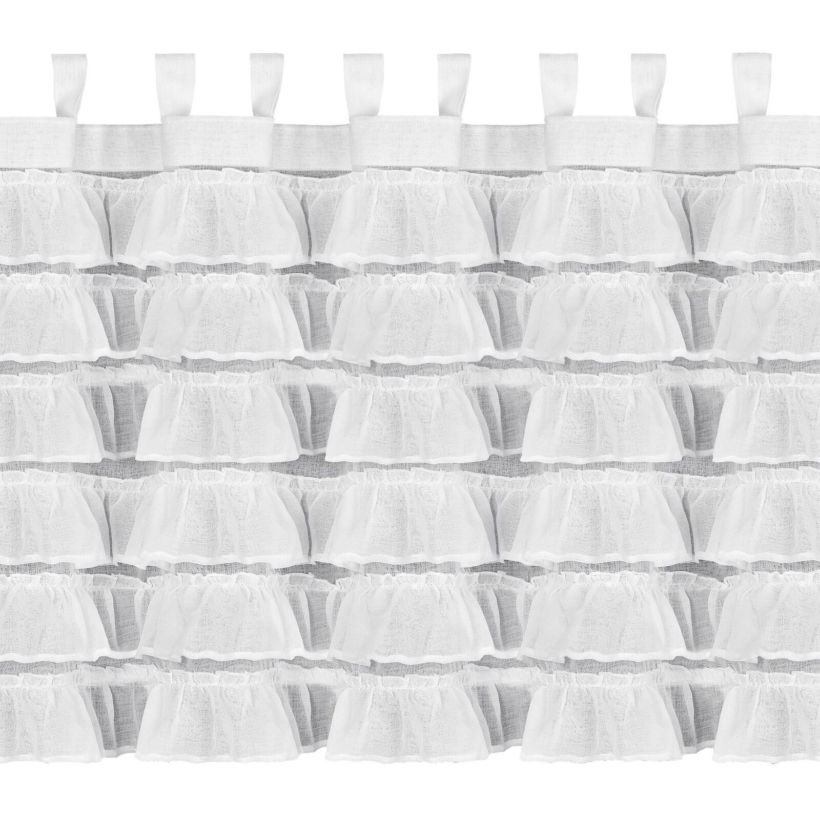 Zazdrostka gotowa zdobiona falbankami szerokość: 150 cm, długość: 70 cm, kolor: biały, Skład: 100% poliester