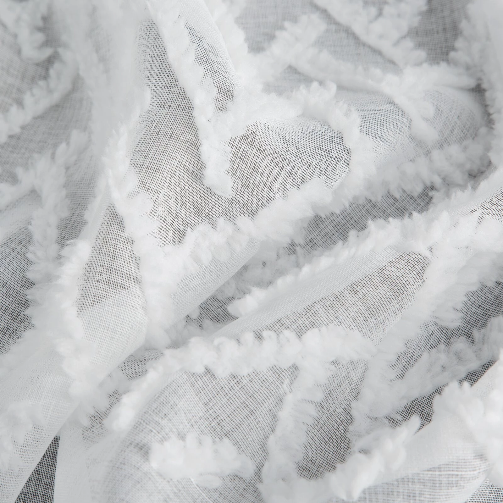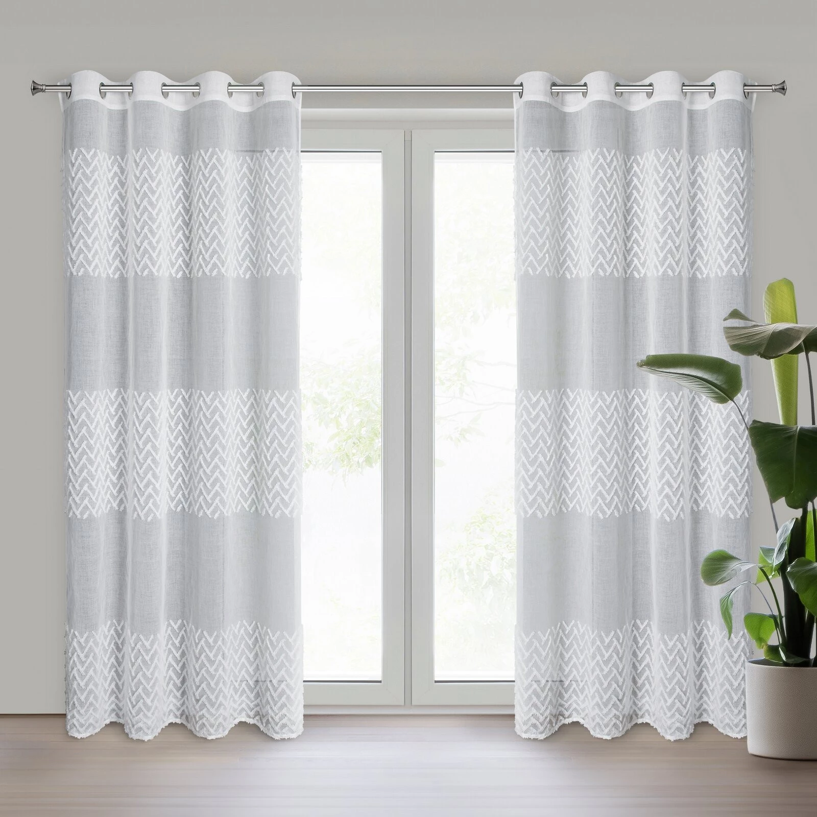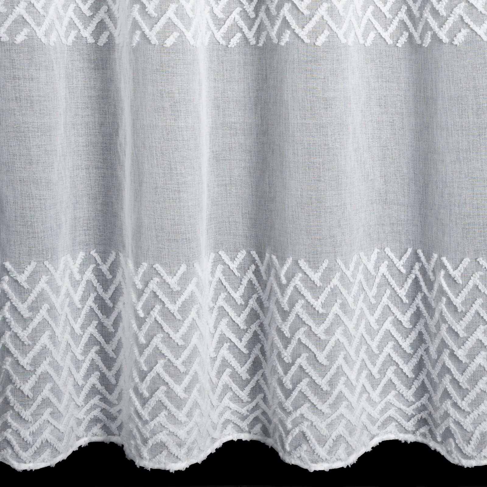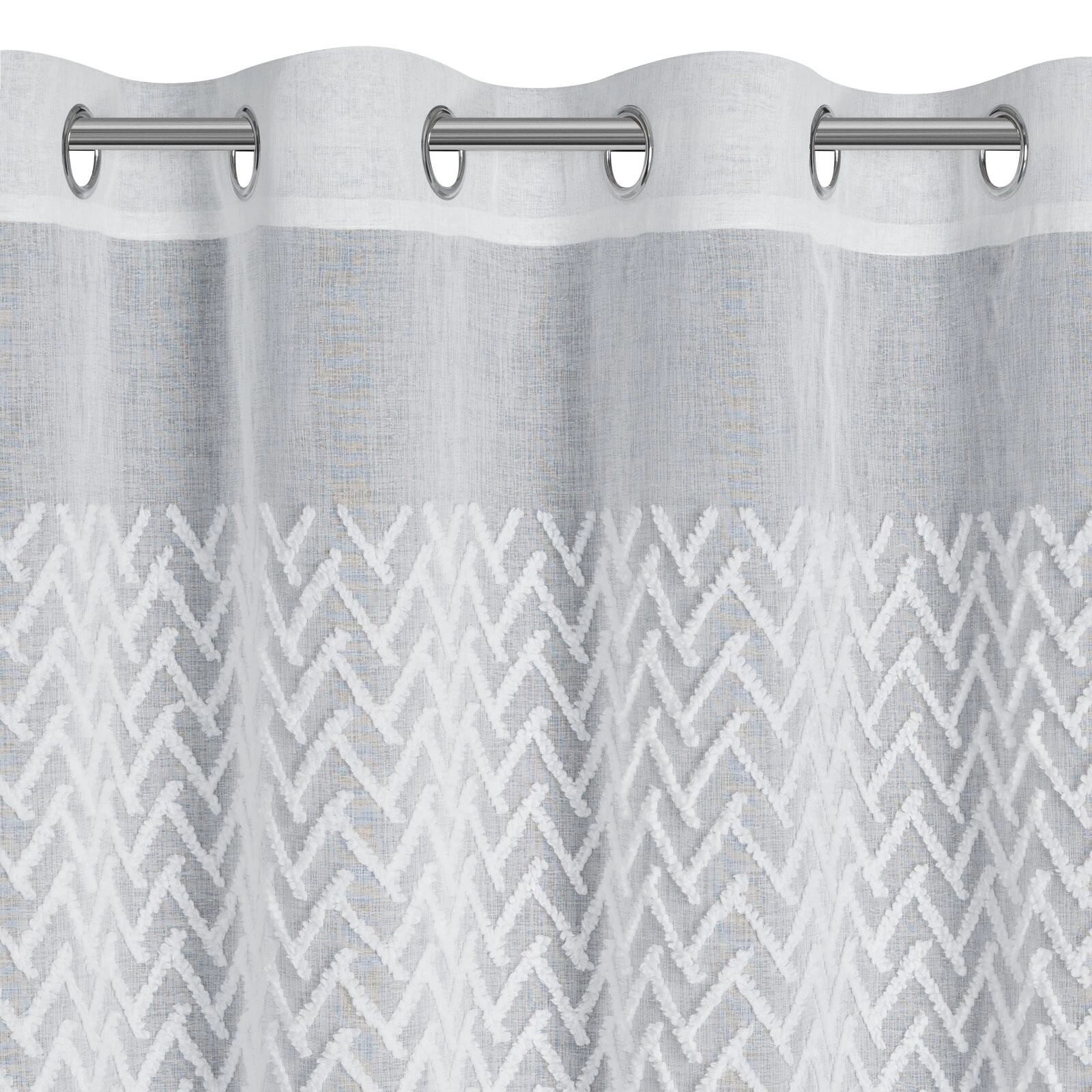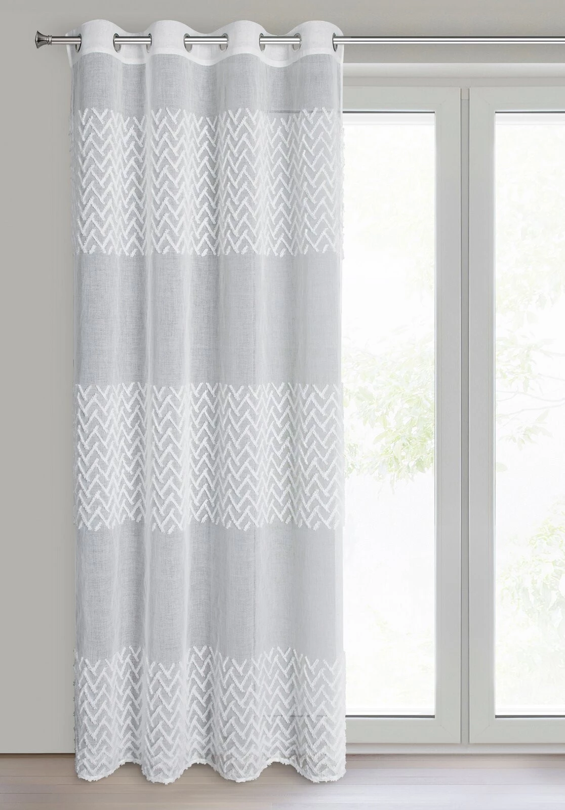 - Zasłona gotowa zdobiona geometryczną aplikacją szerokość: 140 cm, długość: 250 cm, kolor: biały, Gramatura: 80 GSM, Skład: 100% poliester