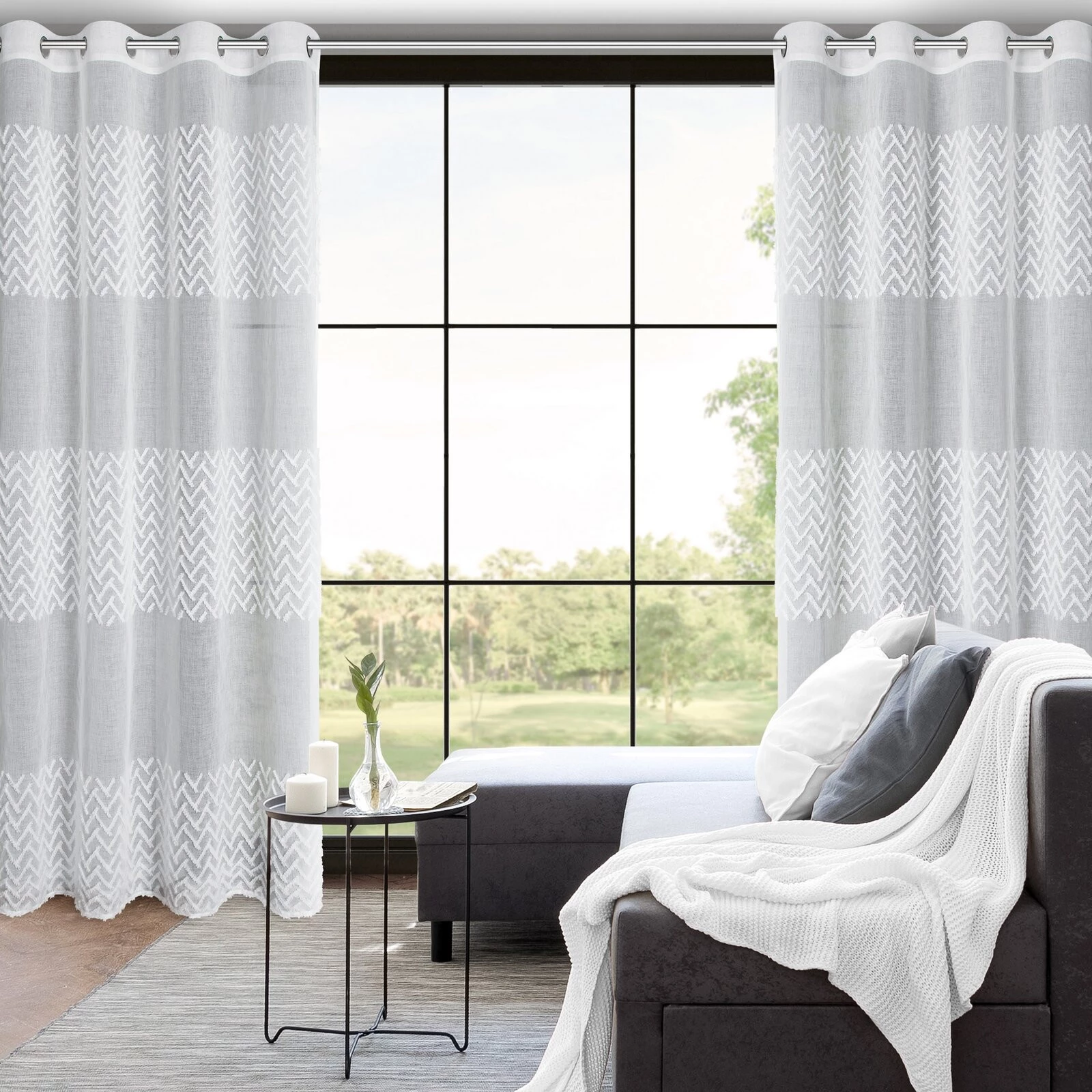 Zasłona gotowa zdobiona geometryczną aplikacją szerokość: 140 cm, długość: 250 cm, kolor: biały, Gramatura: 80 GSM, Skład: 100% poliester