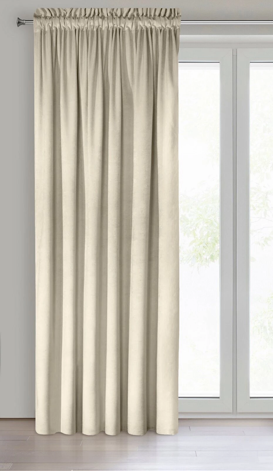 Zasłona welwetowa jednokolorowa szerokość: 140 cm, długość: 270 cm, kolor: kremowy, Gramatura: 200 GSM, Skład: 100% poliester
