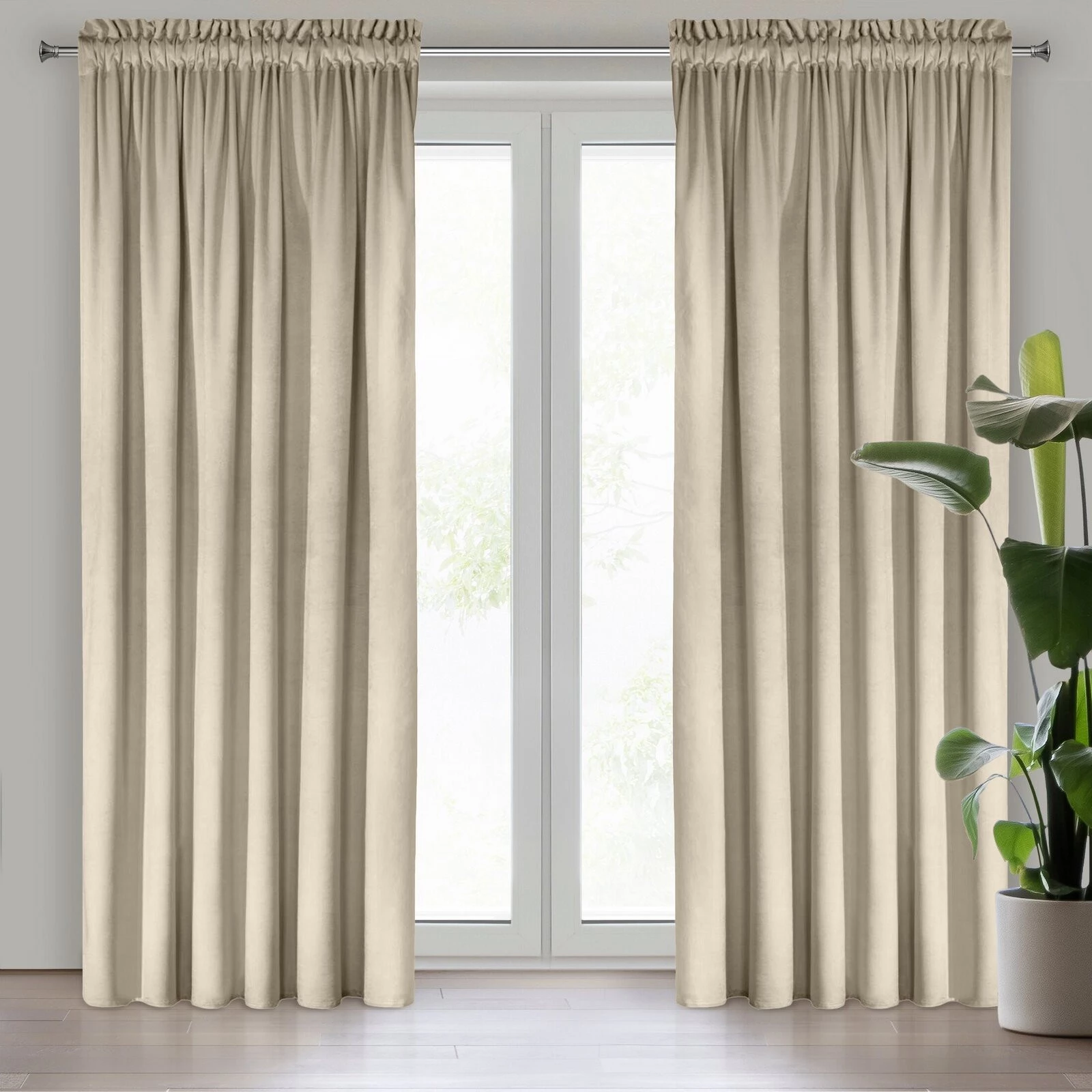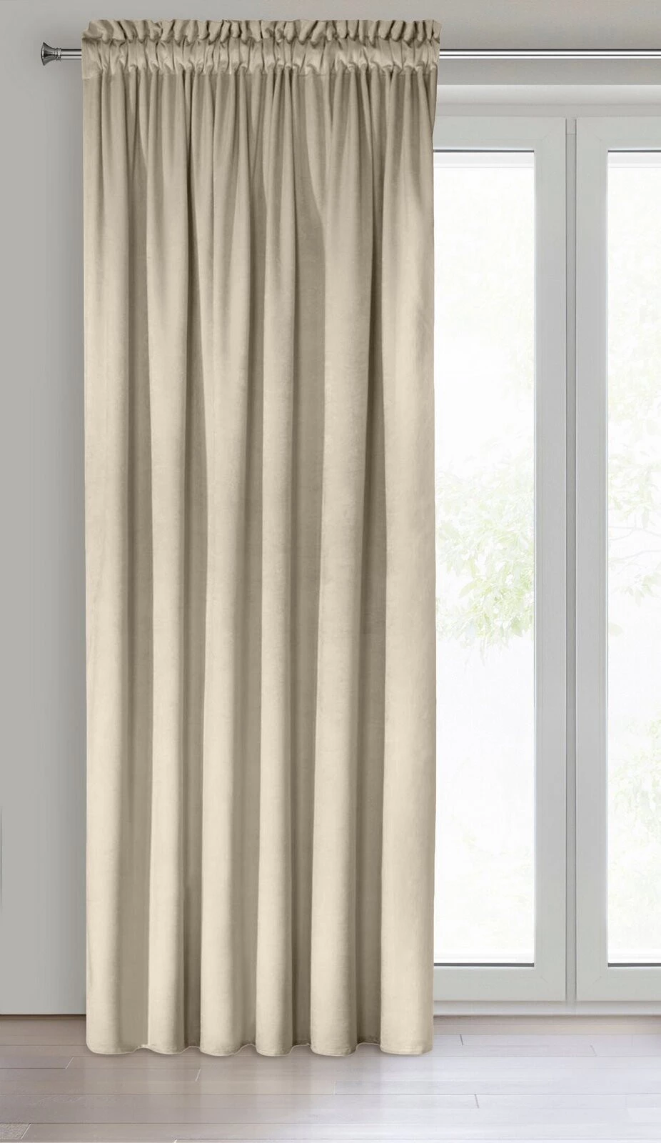 - Zasłona welwetowa jednokolorowa szerokość: 140 cm, długość: 270 cm, kolor: jasnobeżowy, Gramatura: 200 GSM, Skład: 100% poliester