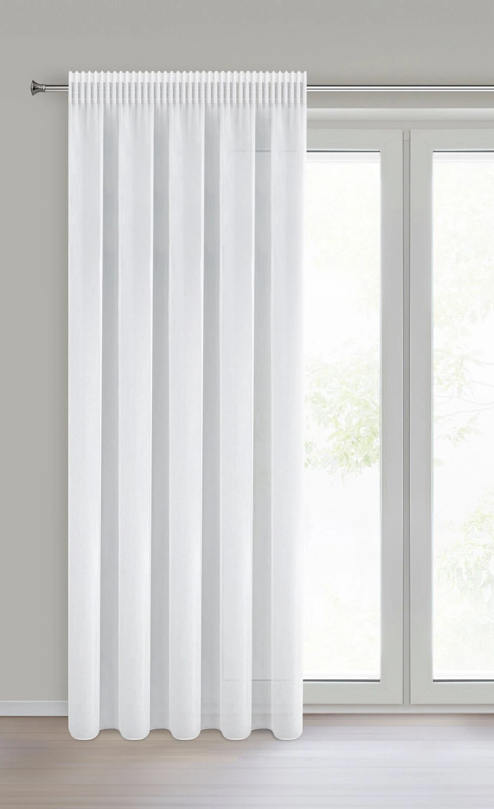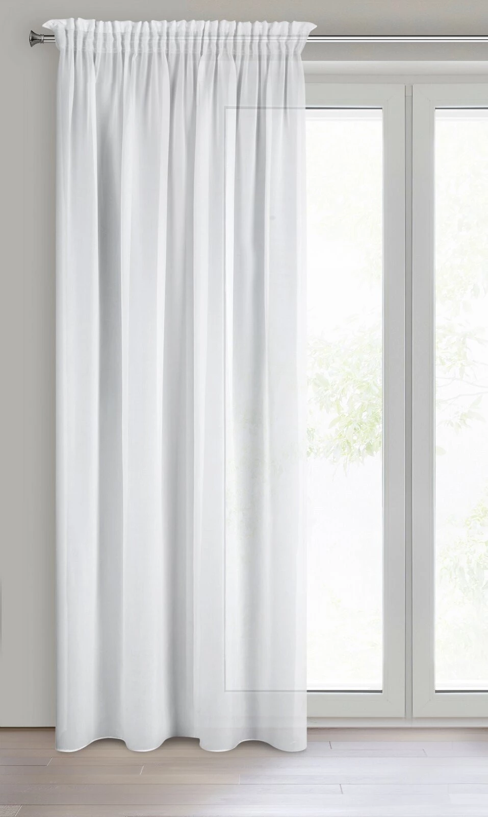 Firana gotowa gładka szerokość: 140 cm, długość: 270 cm, kolor: biały, Gramatura: 90 GSM, Skład: 100% poliester