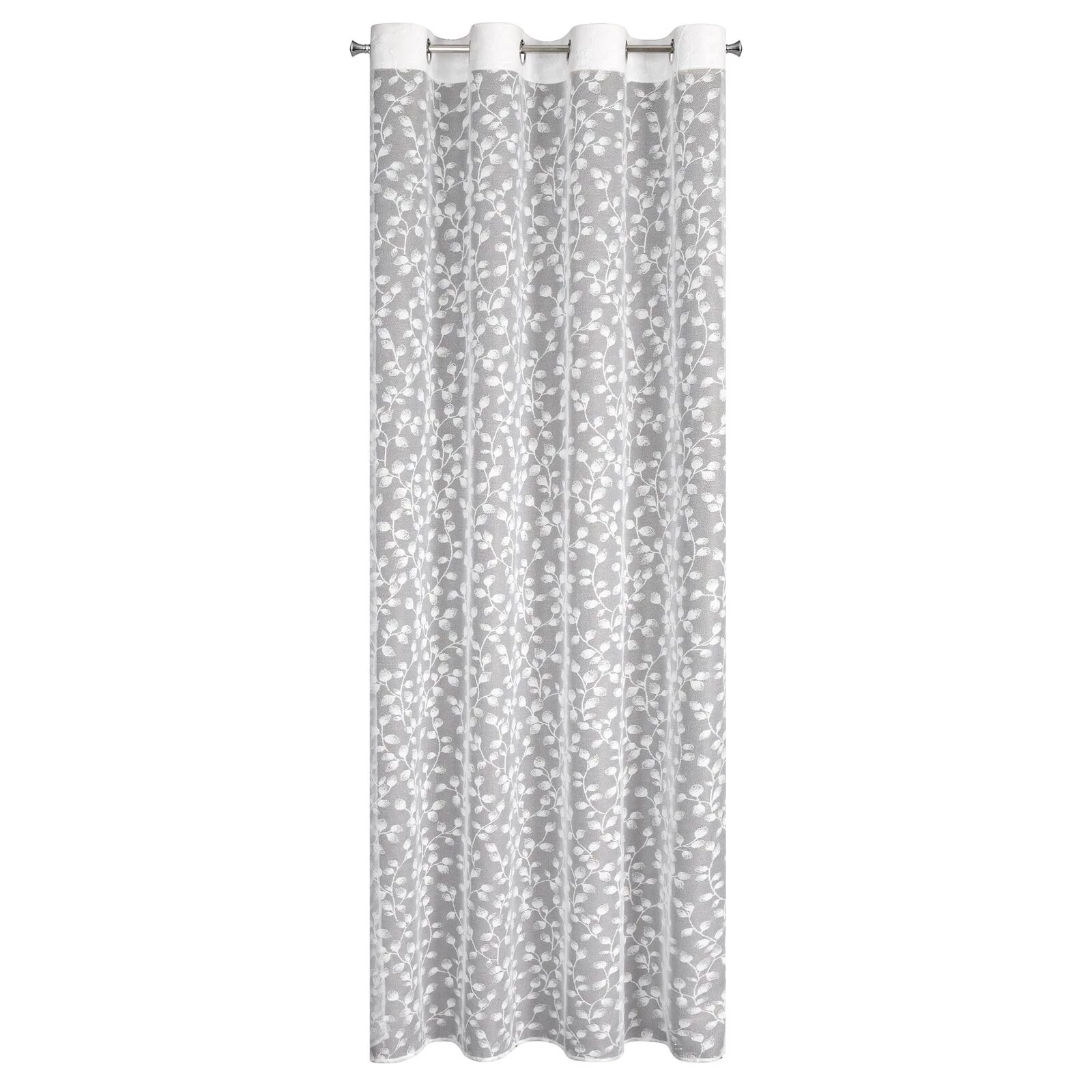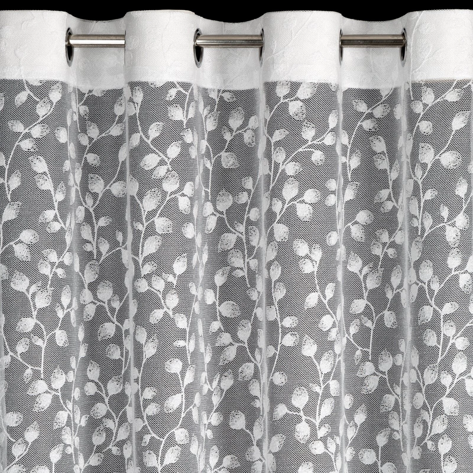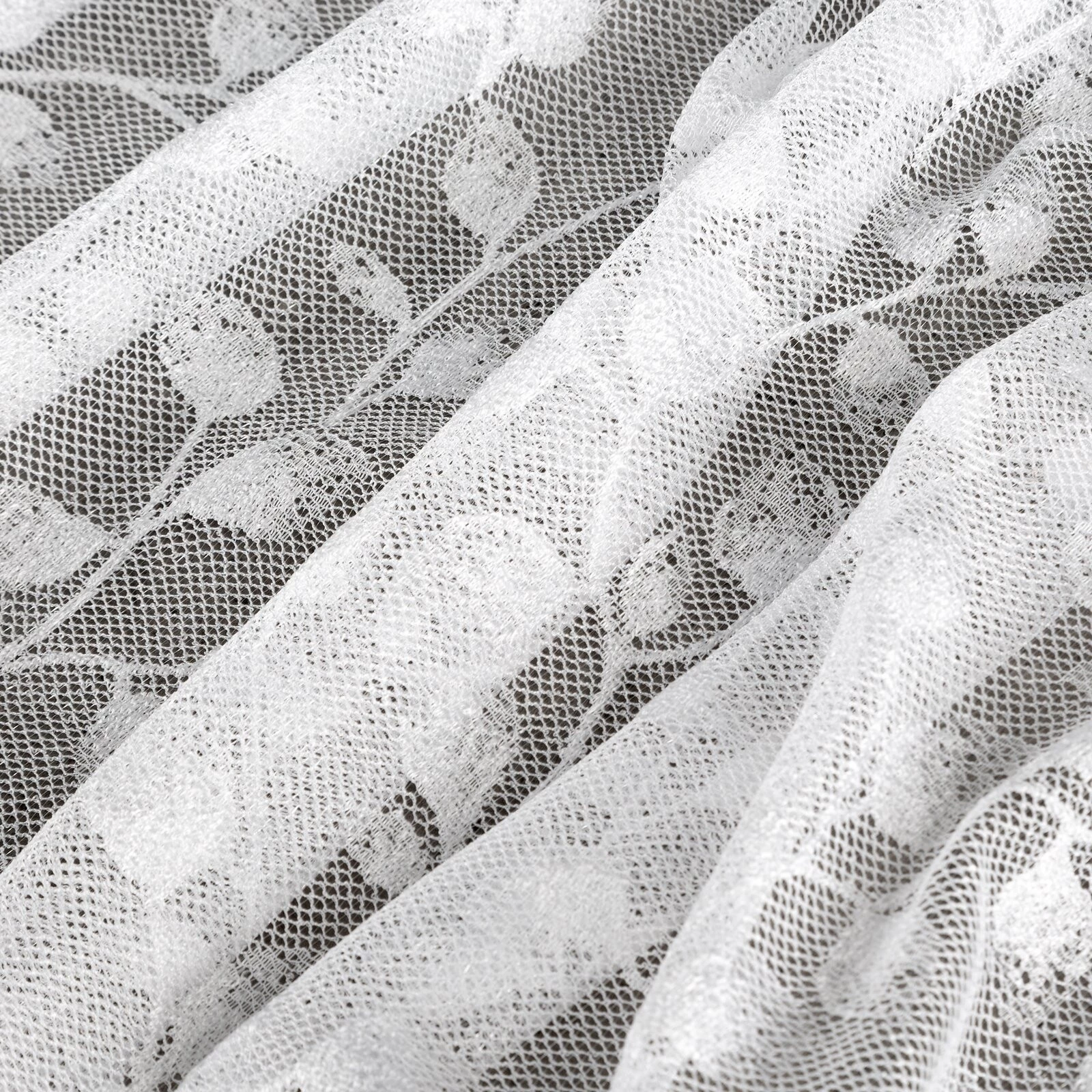 Firana gotowa żakardowa zdobiona transparentną nicią szerokość: 140 cm, długość: 250 cm, kolor: biały, Gramatura: 125 GSM, Skład: 100% poliester