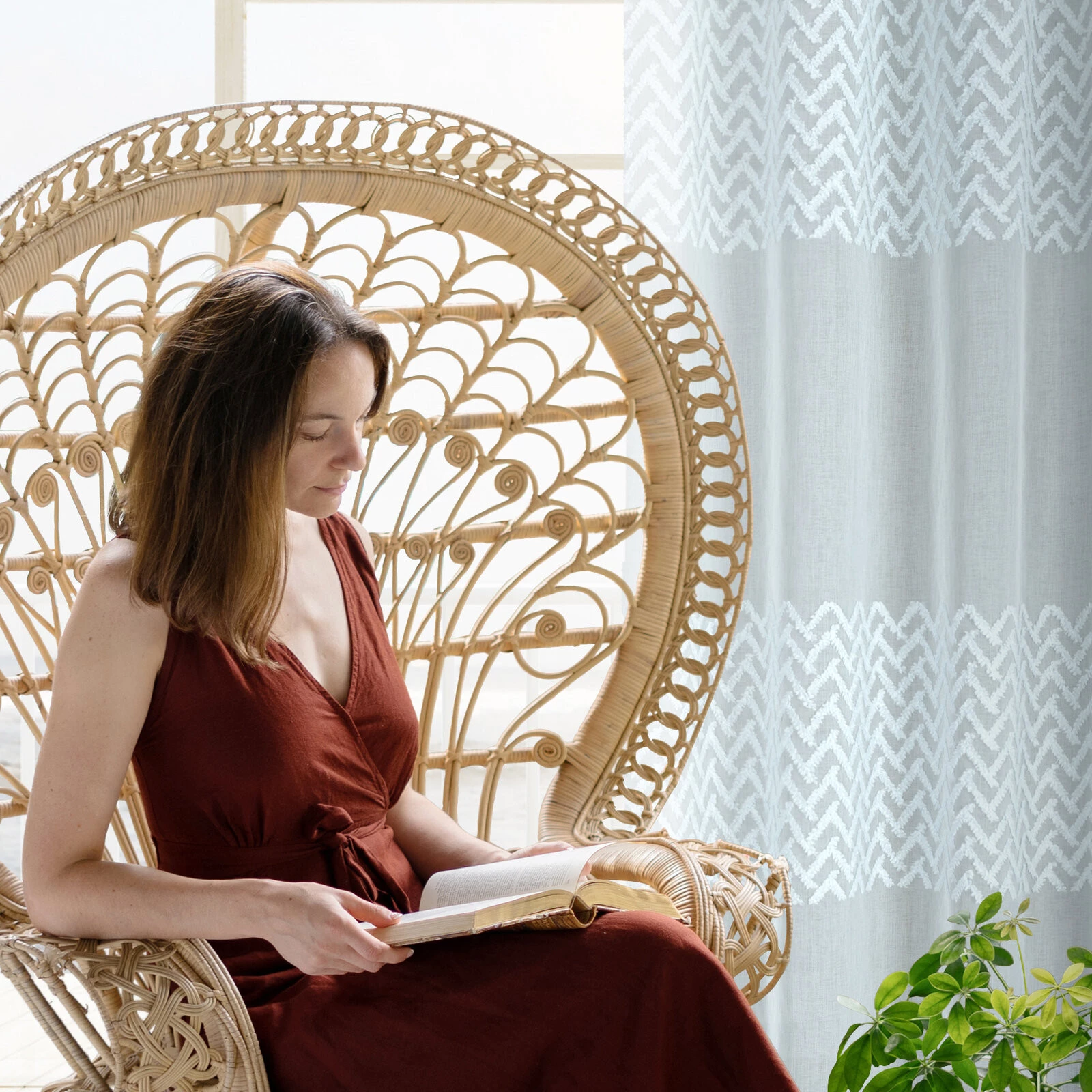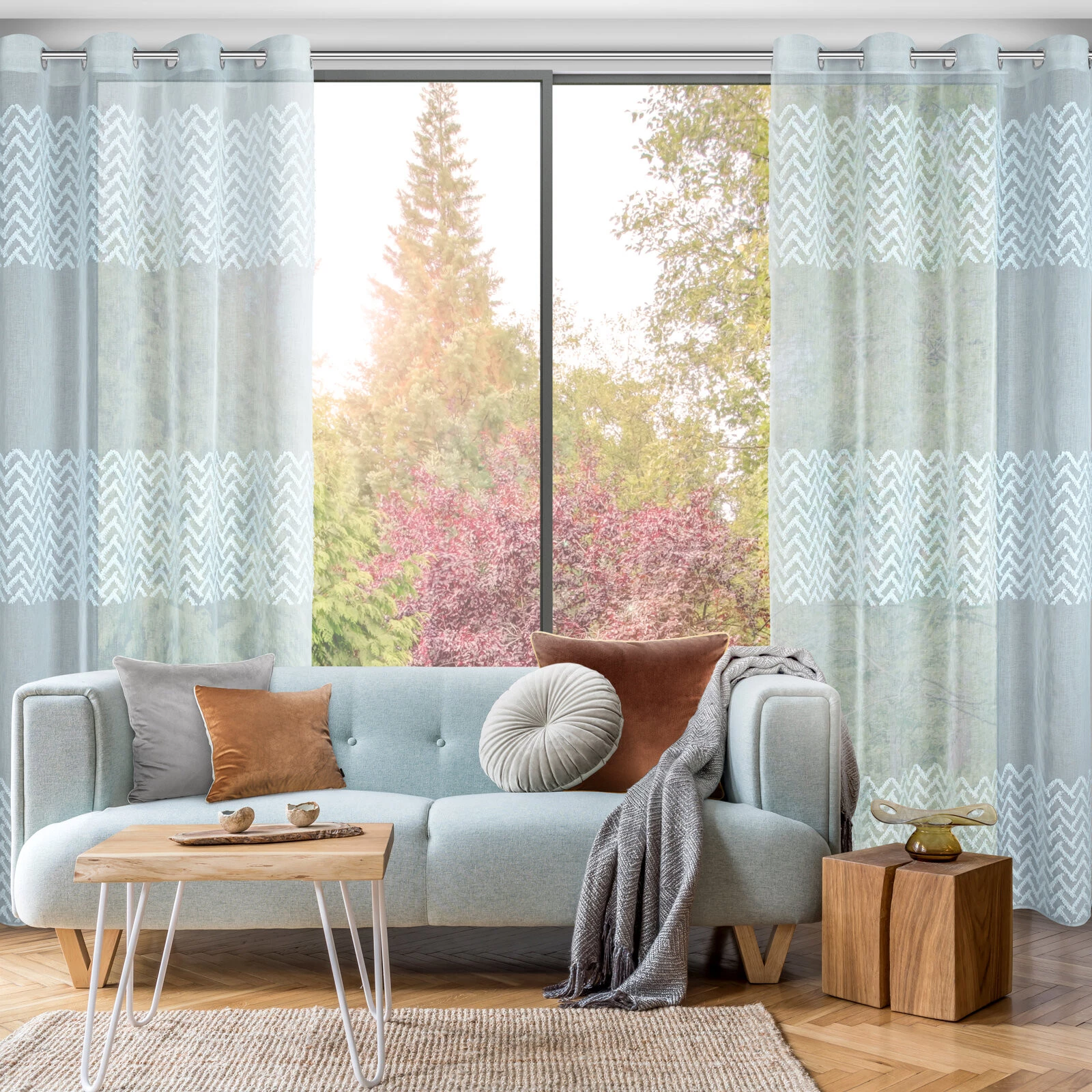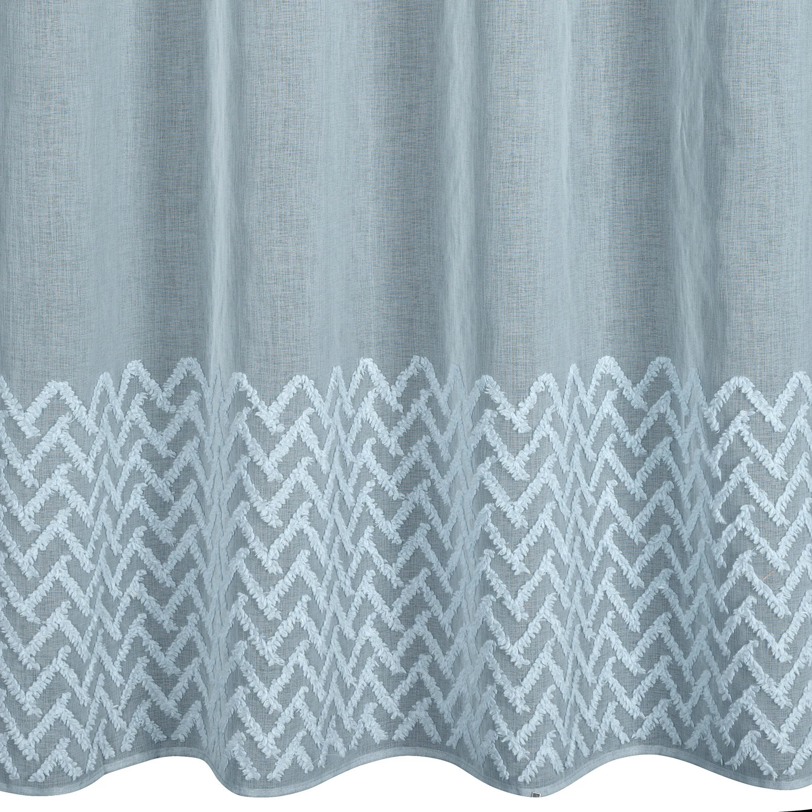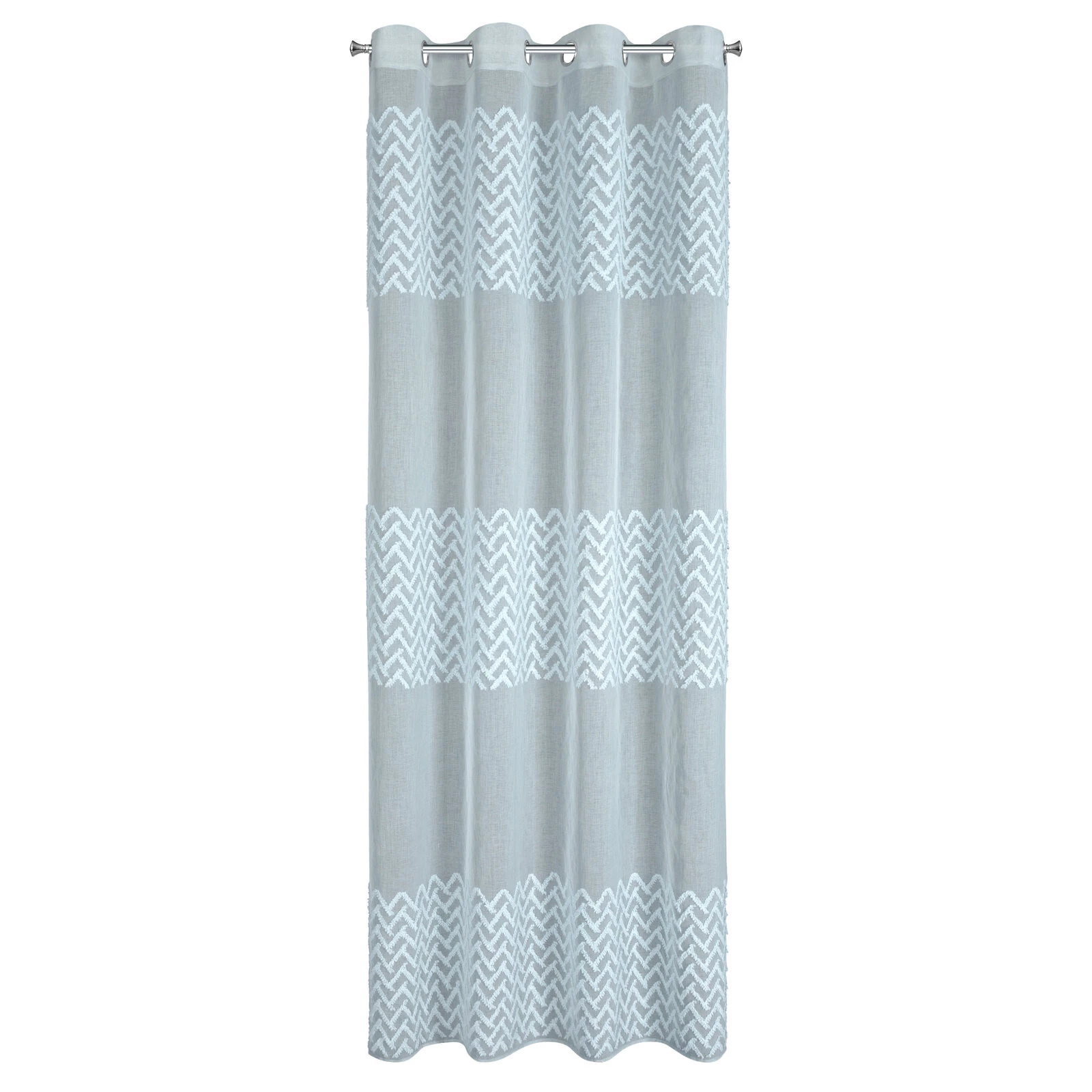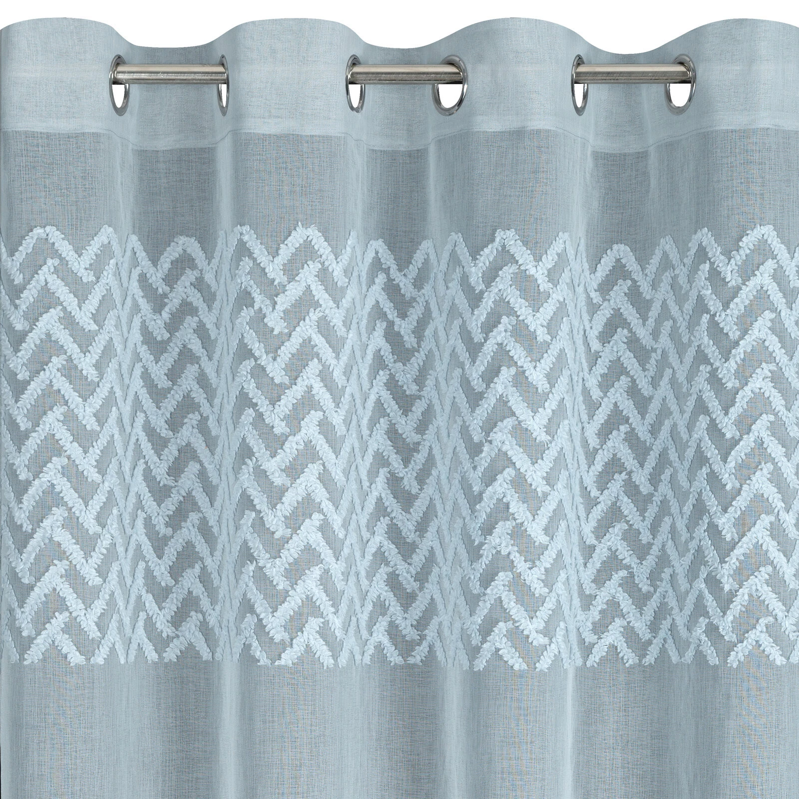 Zasłona gotowa zdobiona geometryczną aplikacją szerokość: 140 cm, długość: 250 cm, kolor: niebieski, Gramatura: 80 GSM, Skład: 100% poliester