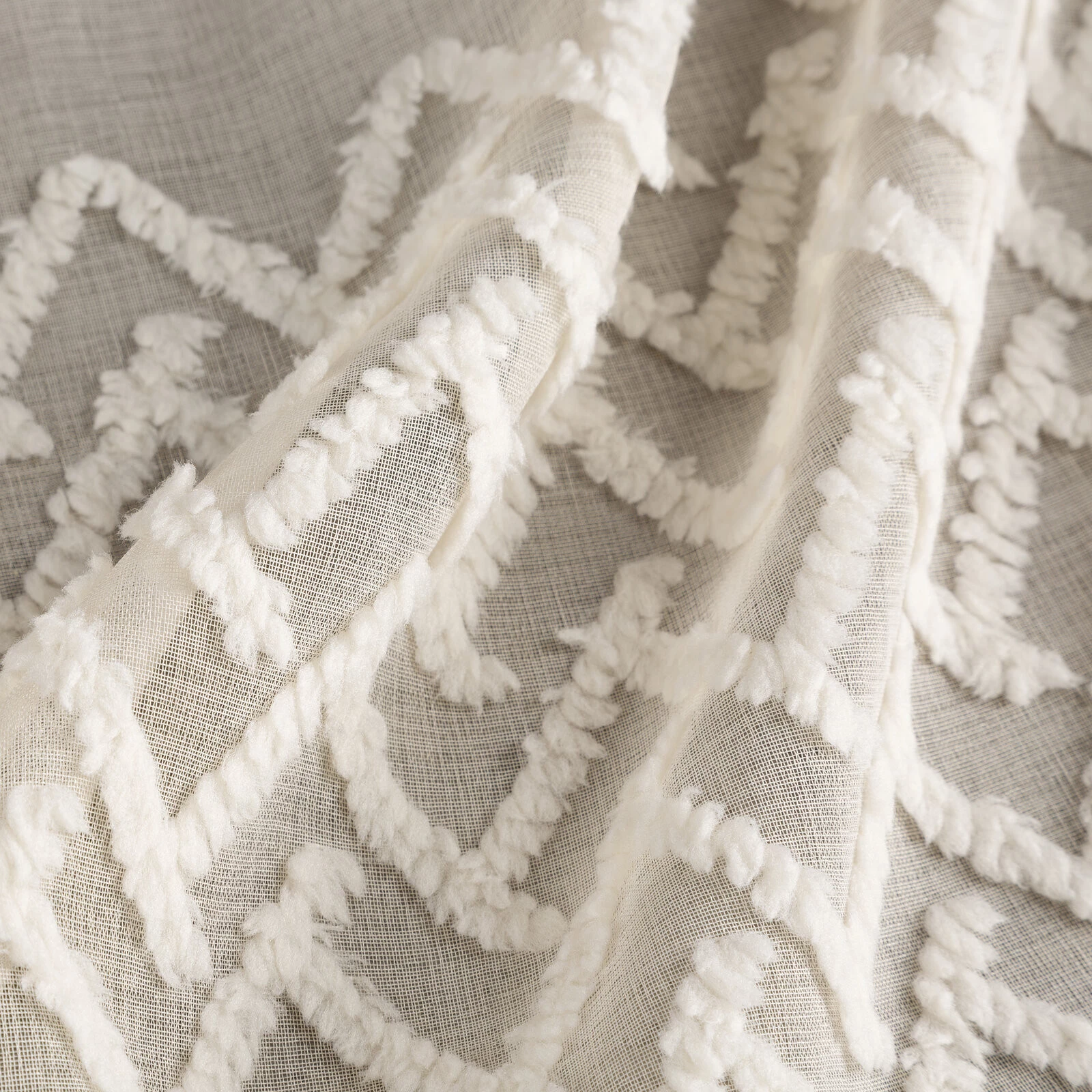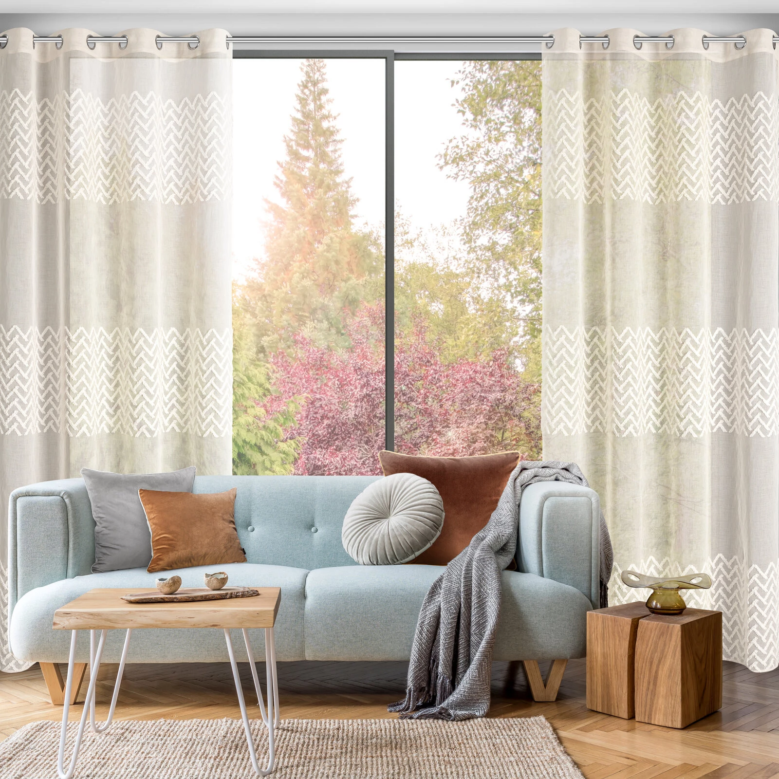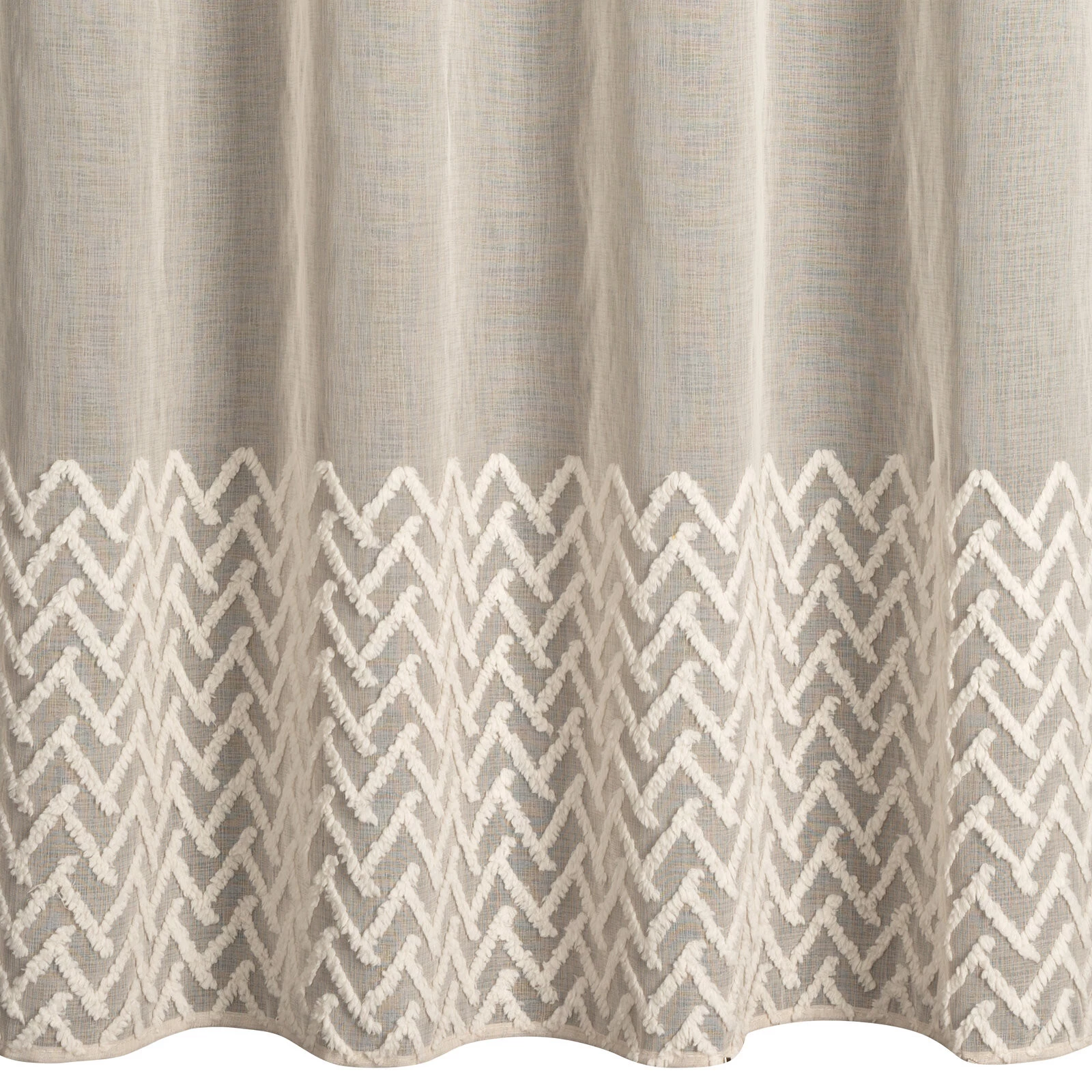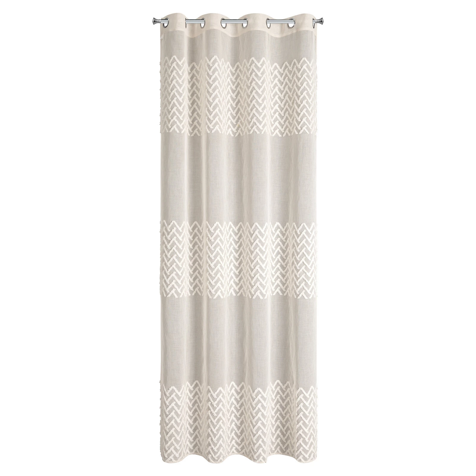 Zasłona gotowa zdobiona geometryczną aplikacją szerokość: 140 cm, długość: 250 cm, kolor: beżowy, Gramatura: 80 GSM, Skład: 100% poliester