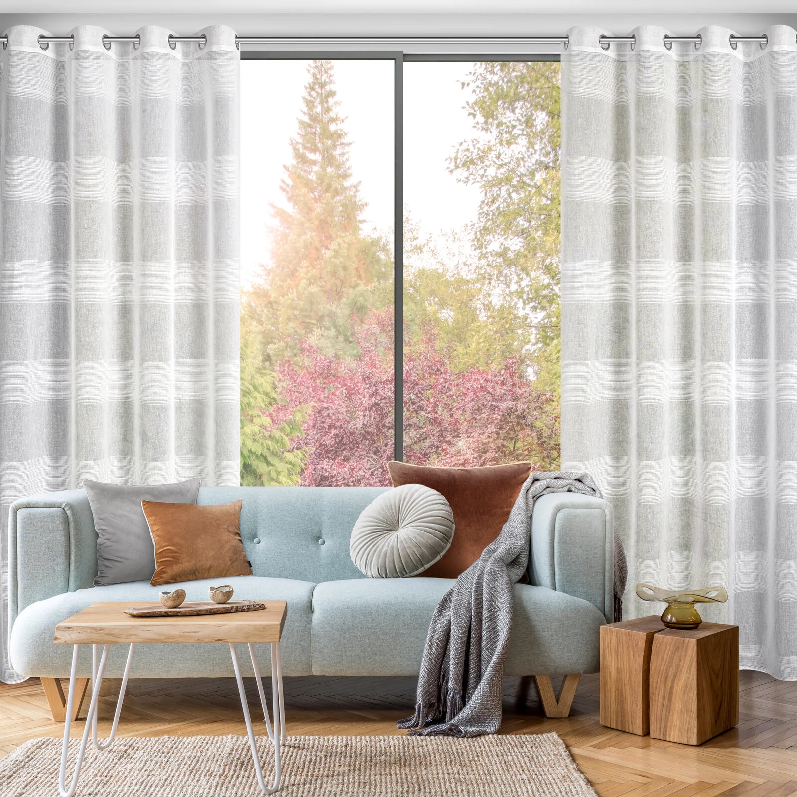 Zasłona gotowa z szenilowymi pasami szerokość: 140 cm, długość: 250 cm, kolor: biały, Gramatura: 120 GSM, Skład: 100% poliester