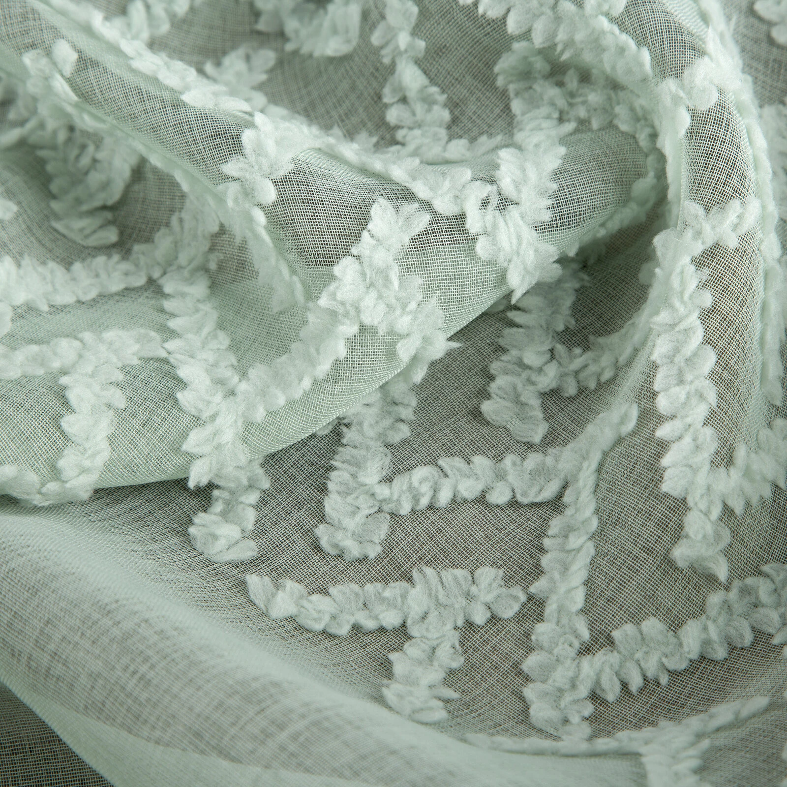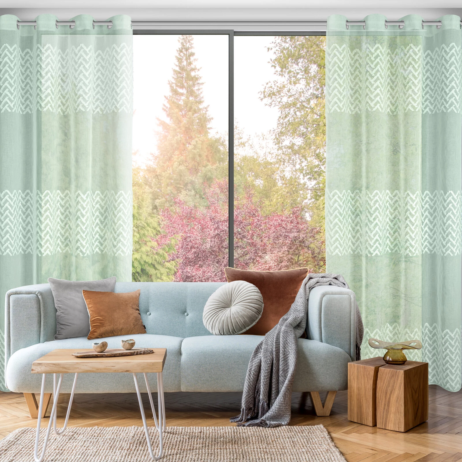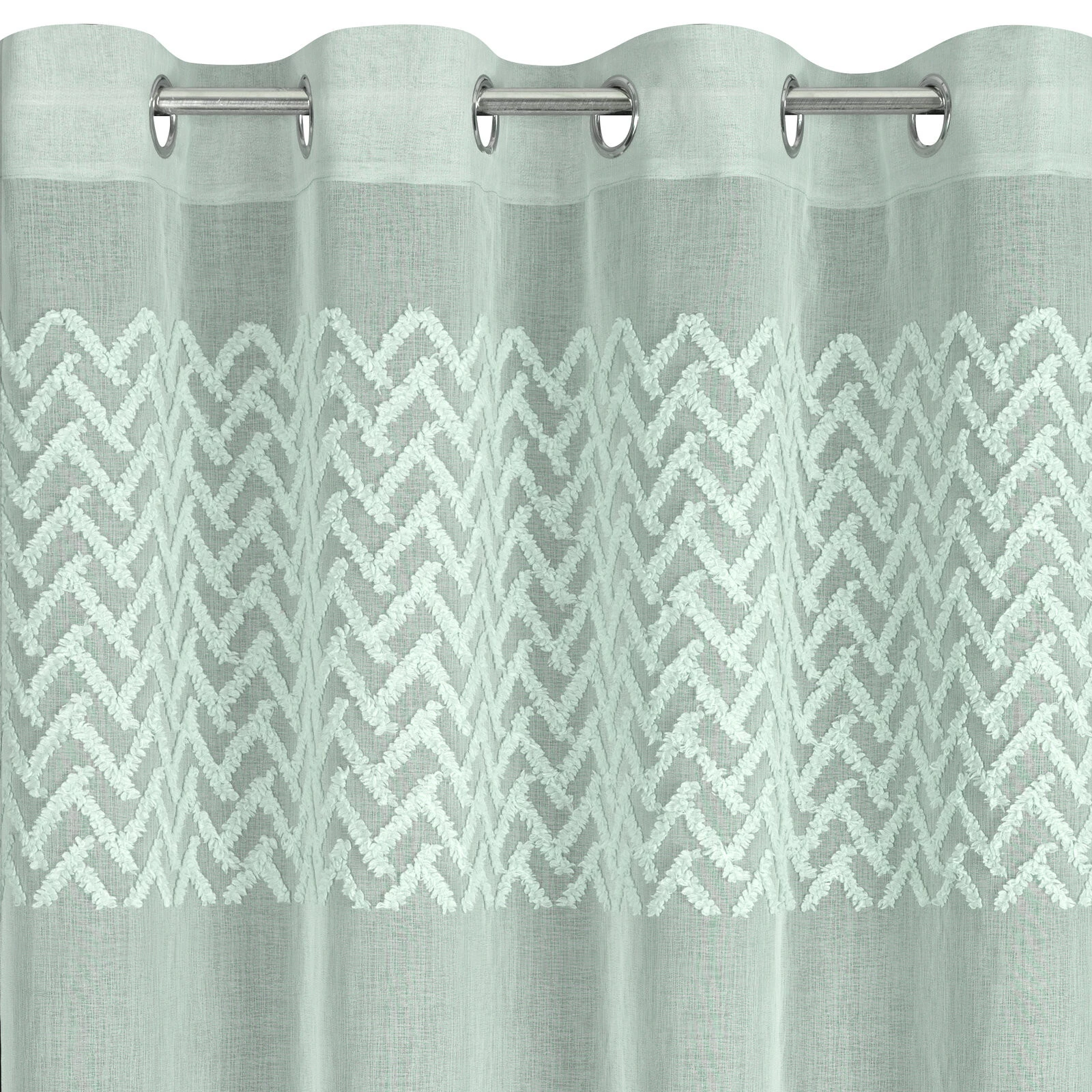 - Zasłona gotowa zdobiona geometryczną aplikacją szerokość: 140 cm, długość: 250 cm, kolor: miętowy, Gramatura: 80 GSM, Skład: 100% poliester