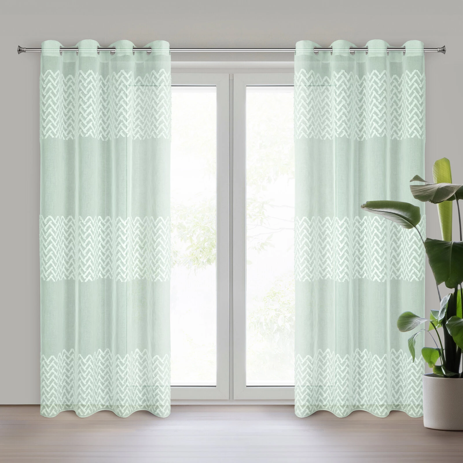 Zasłona gotowa zdobiona geometryczną aplikacją szerokość: 140 cm, długość: 250 cm, kolor: miętowy, Gramatura: 80 GSM, Skład: 100% poliester