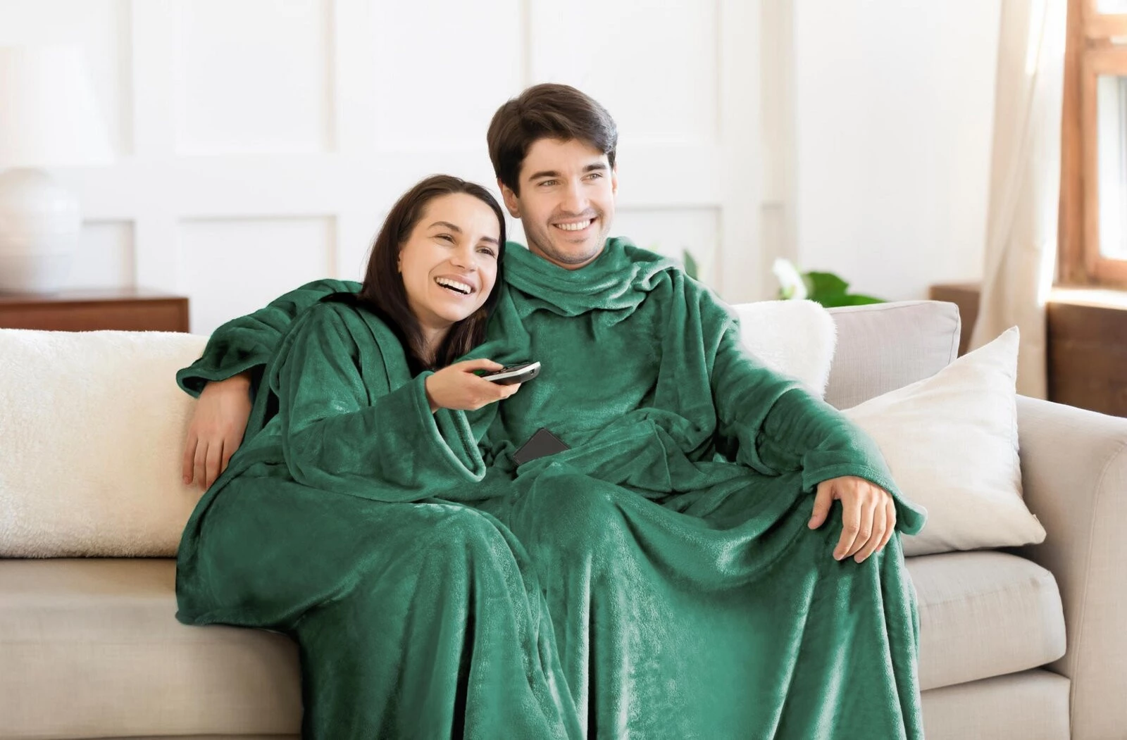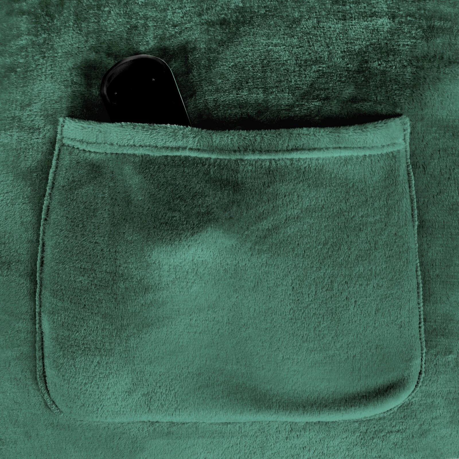 - Koc typu flano z kieszenią i rękawami, idealny na seanse telewizyjne szerokość: 150 cm, długość: 180 cm, kolor: ciemnozielony, Gramatura: 240 GSM, Skład: 100% poliester