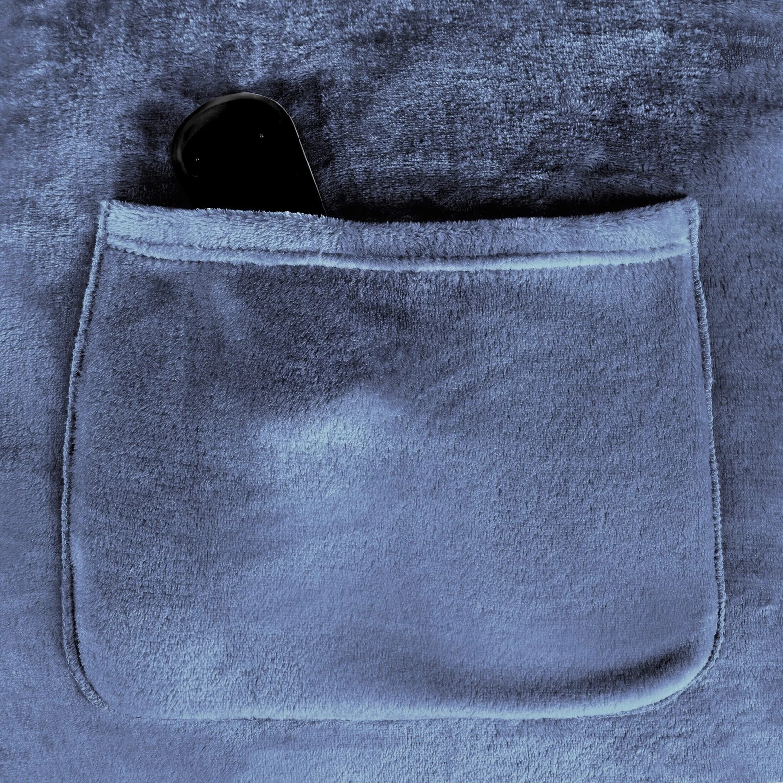 Koc typu flano z kieszenią i rękawami, idealny na seanse telewizyjne szerokość: 150 cm, długość: 180 cm, kolor: ciemnoniebieski, Gramatura: 240 GSM, Skład: 100% poliester