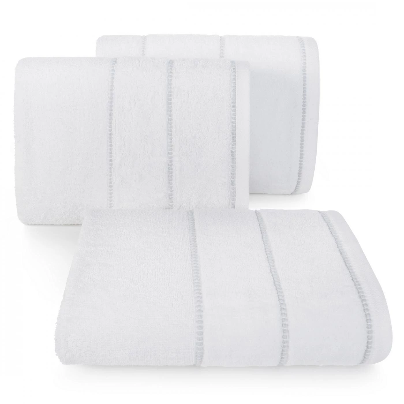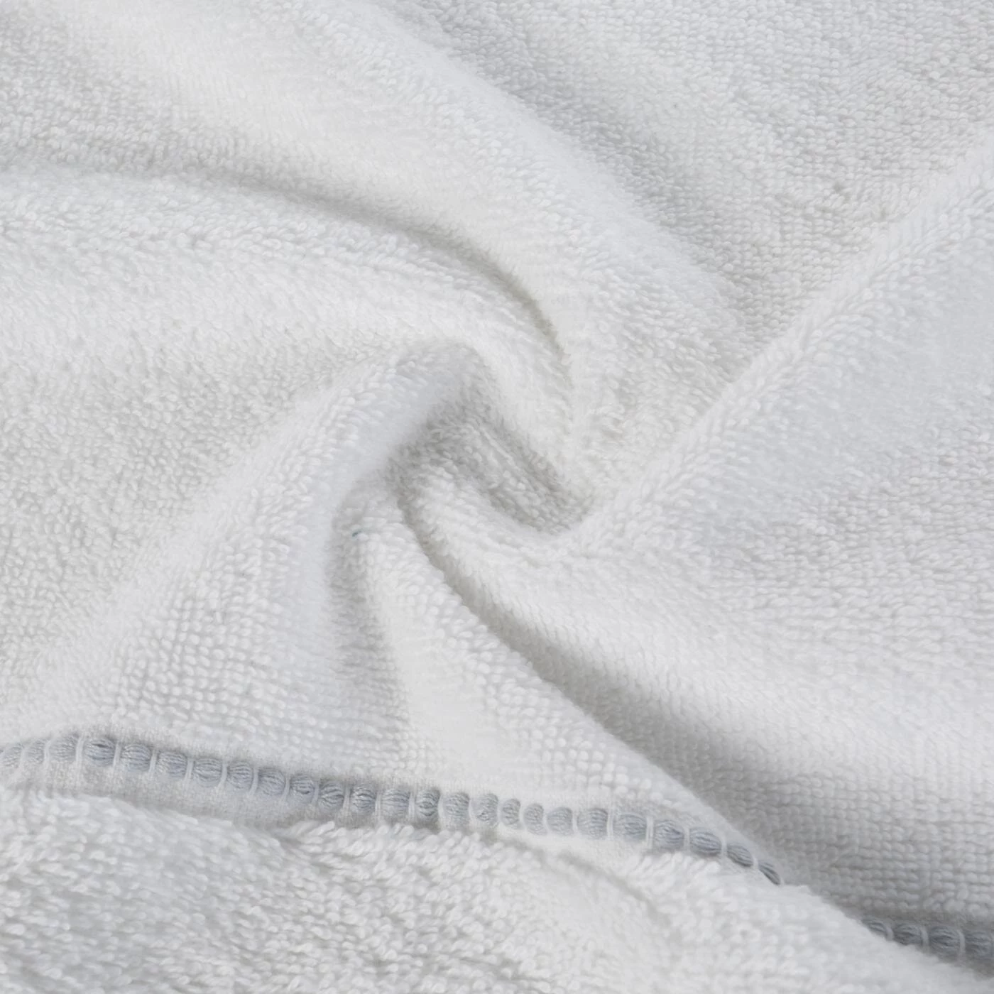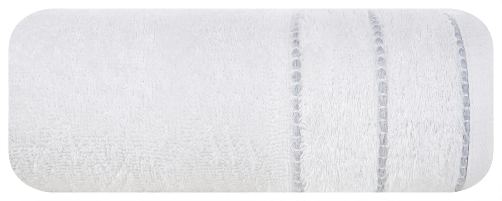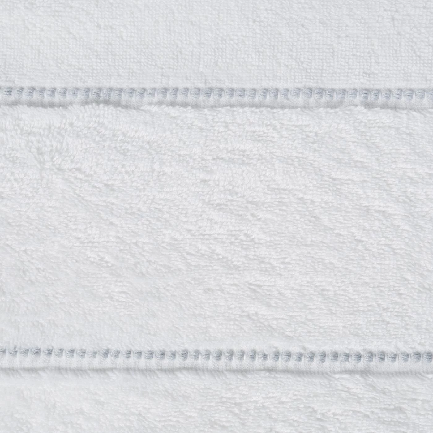 Ręcznik z ozdobną welurową bordiurą w pasy szerokość: 30 cm, długość: 50 cm, kolor: biały, Gramatura: 500 GSM, Skład: 100% bawełna; część ozdobna: 60% bawełna, 40% poliester