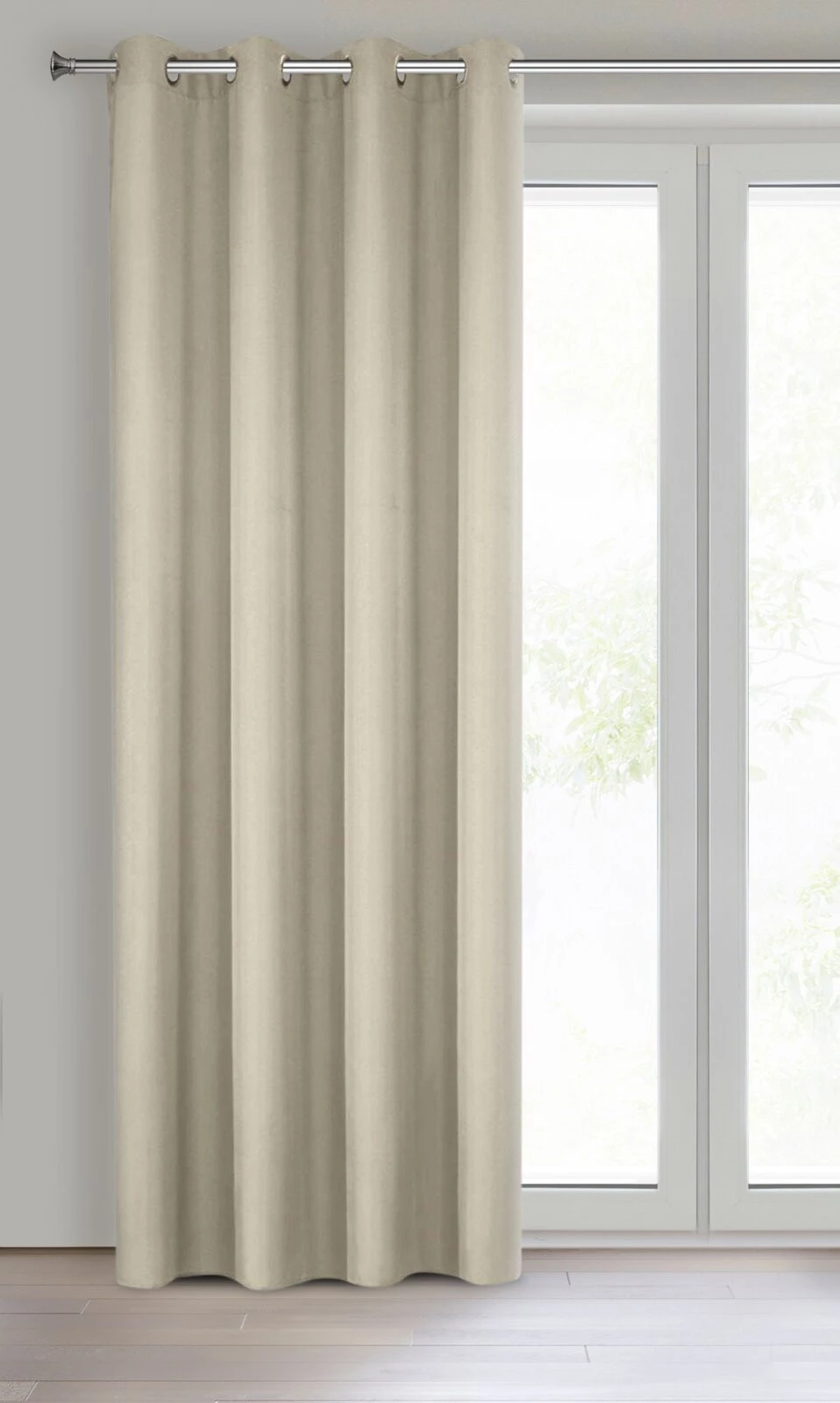 - Zasłona gotowa jednokolorowa matowa szerokość: 140 cm, długość: 250 cm, kolor: ciemnobeżowy, Gramatura: 140 GSM, Skład: 100% poliester