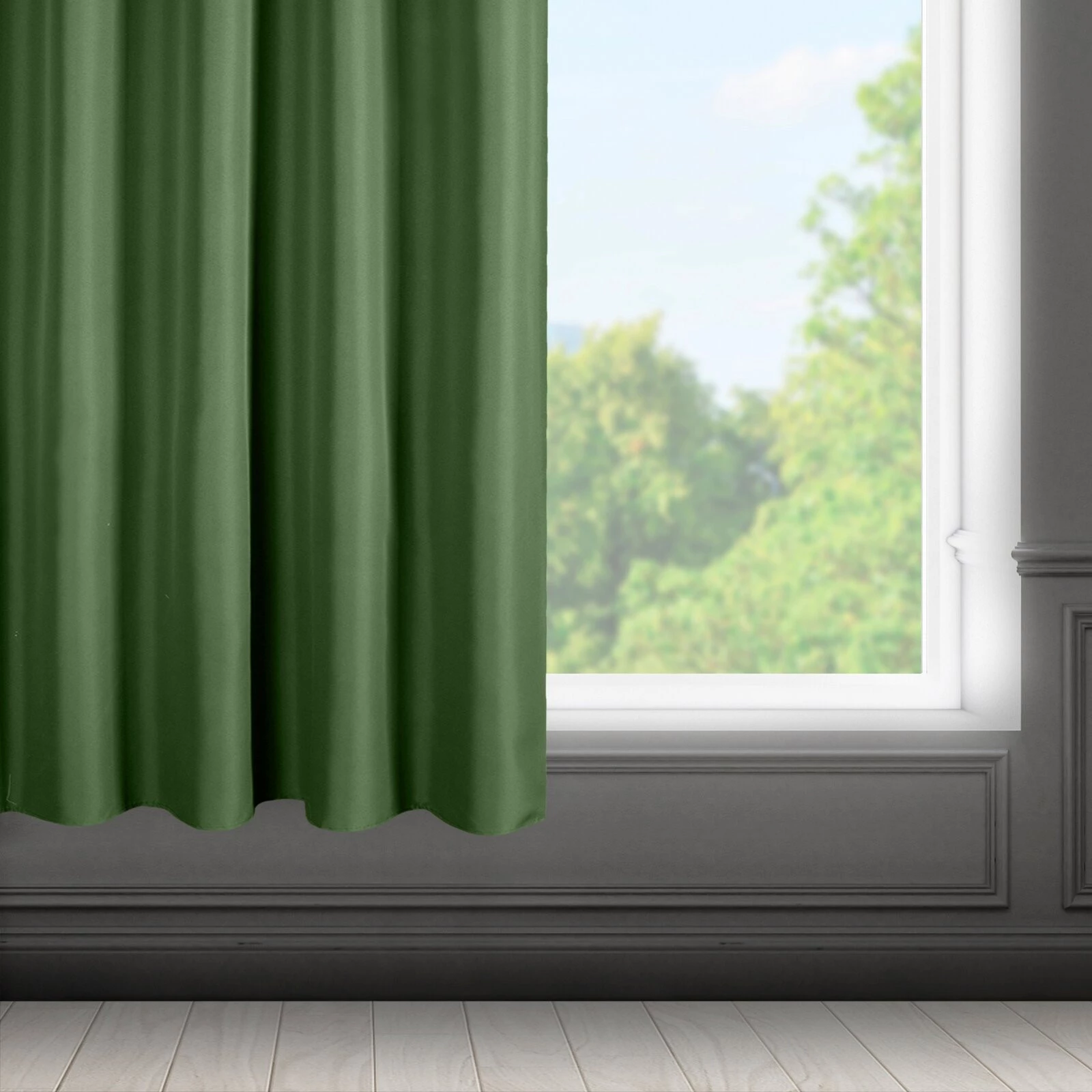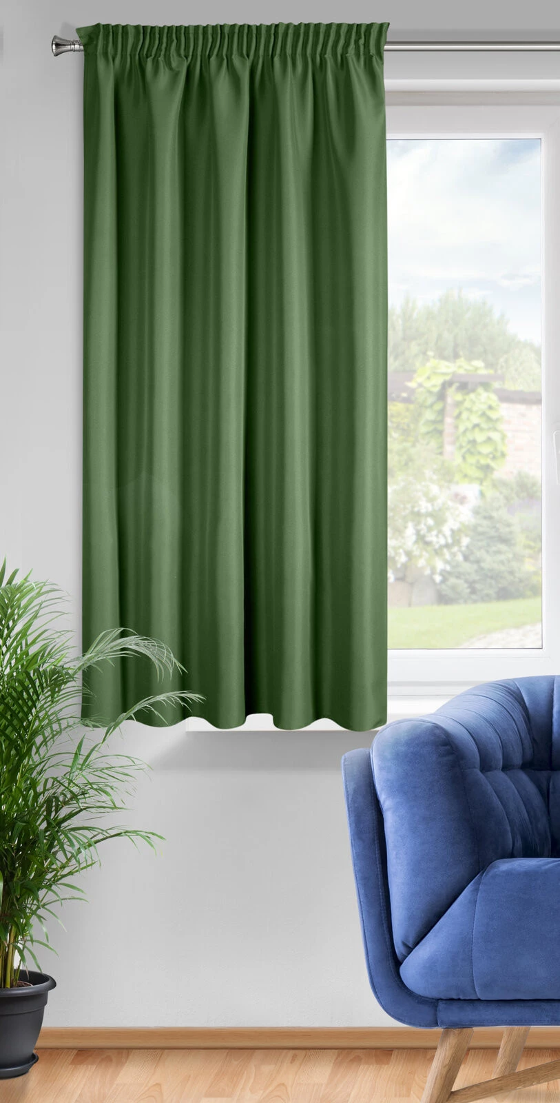 - Zasłona gotowa jednokolorowa matowa szerokość: 140 cm, długość: 175 cm, kolor: ciemnozielony, Gramatura: 140 GSM, Skład: 100% poliester