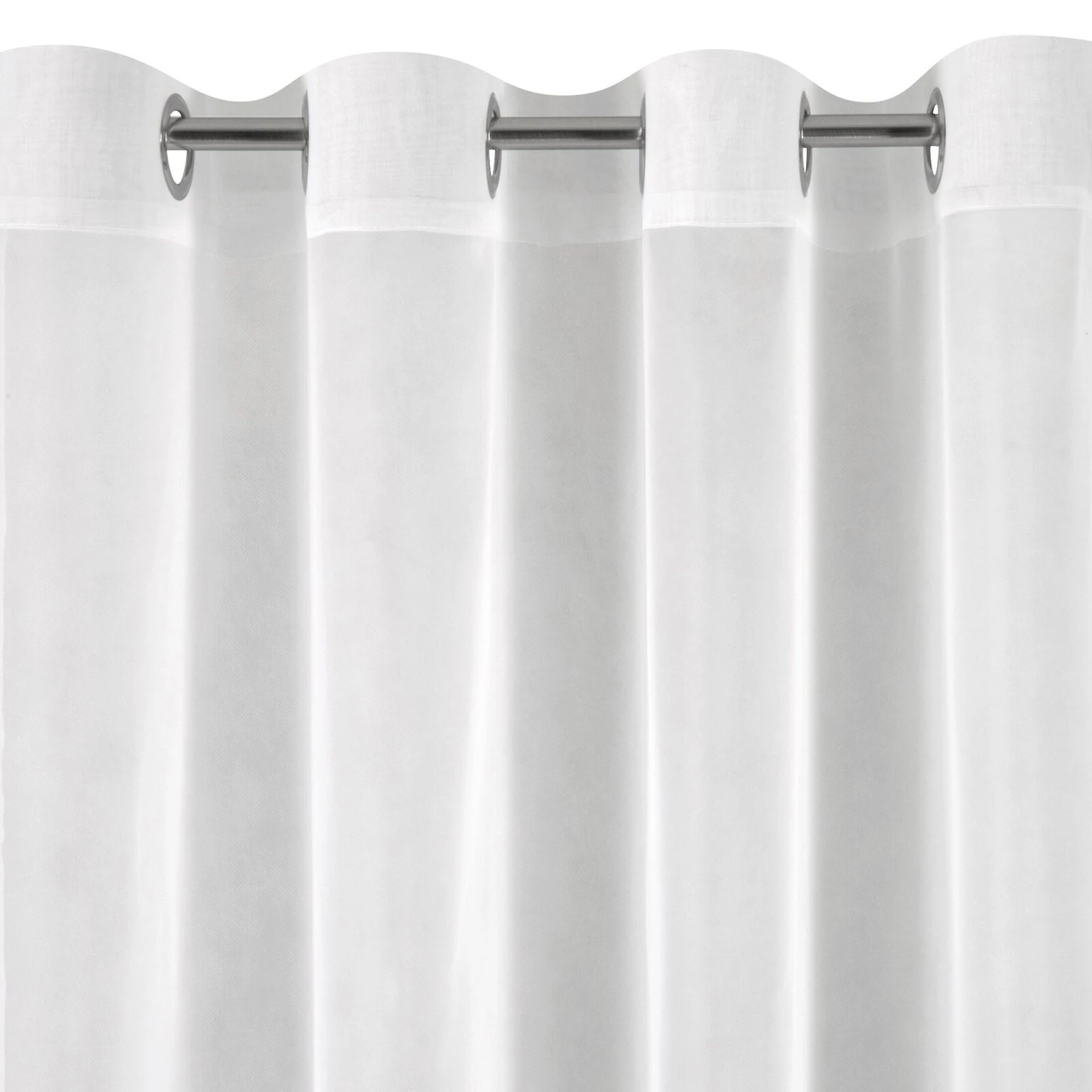Klasyczna, długa, krótka firana uszyta z gładkiego, miękkiego woalu. Subtelna tkanina łatwo się pracuje a po upięciu układa się w miekkie fale. szerokość: 350 cm, długość: 250 cm, kolor: biały, Gramatura: 50 GSM, Skład: 100% poliester