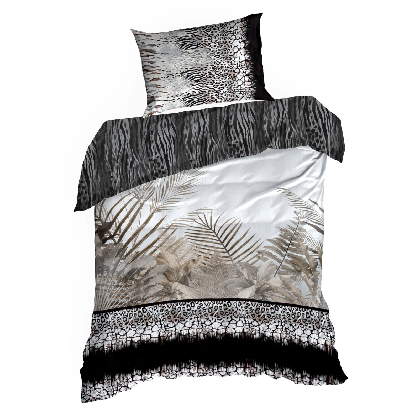 Komplet ekskluzywnej, designerskiej pościeli z satyny bawełnianej z kolekcji polecanej przez Eva Minge. Zapinana na zamek błyskawiczny. Precyzyjne wykonanie. szerokość: 220 cm, długość: 200 cm, kolor: stalowy, Gramatura: 125 GSM, Skład: makosatyna, 100% bawełna