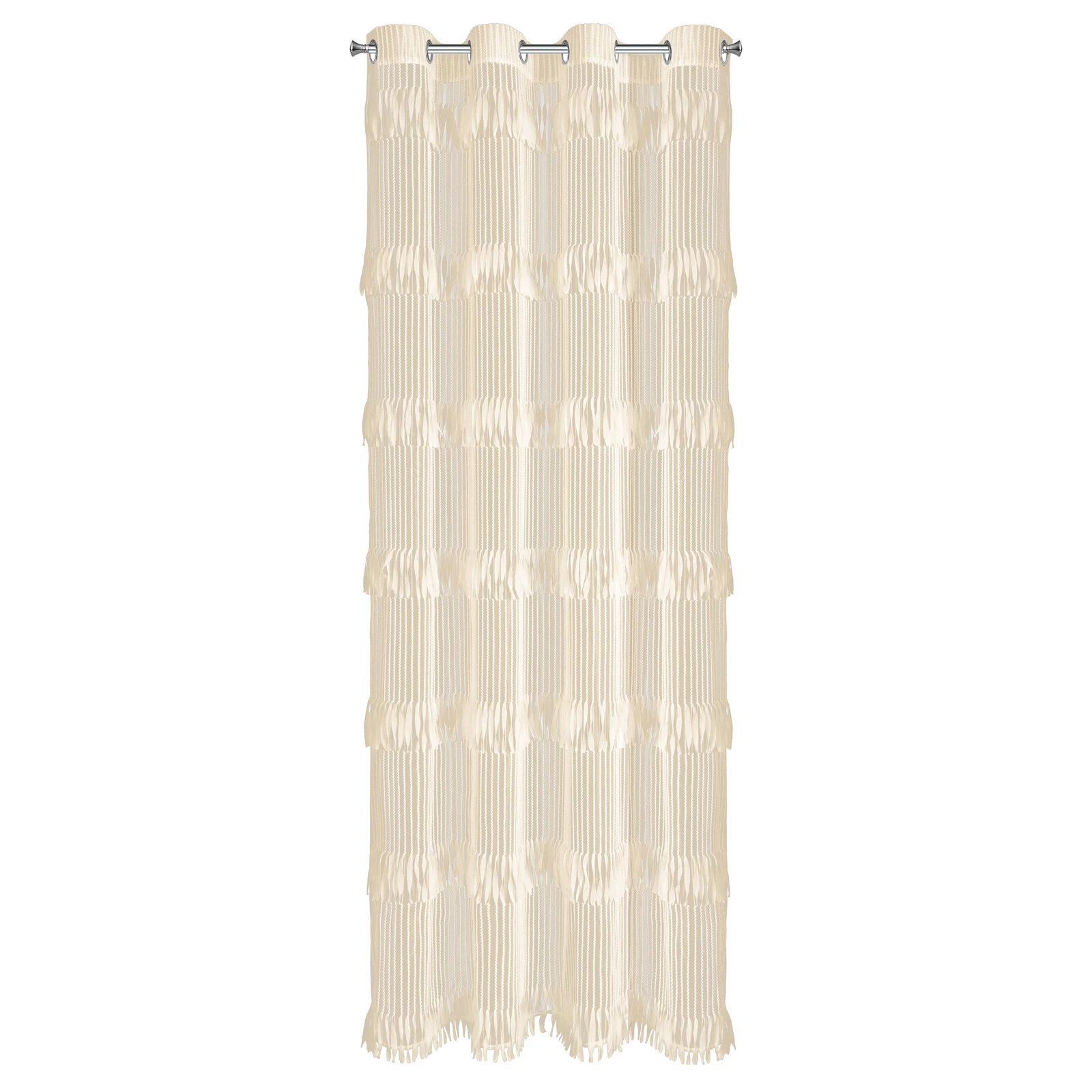 Zasłona gotowa zdobiona frędzlami szerokość: 140 cm, długość: 250 cm, kolor: jasnobeżowy, Skład: 100% poliester