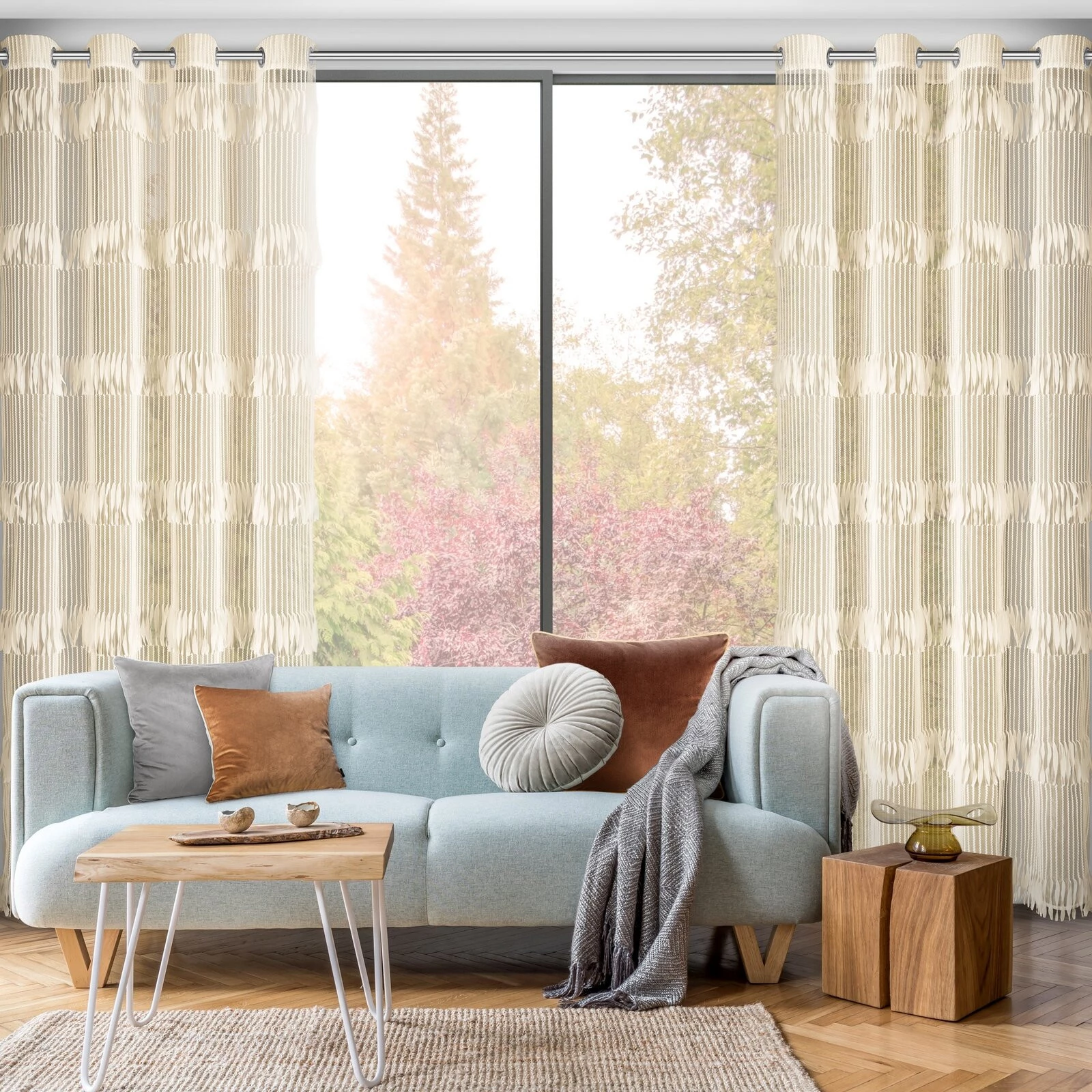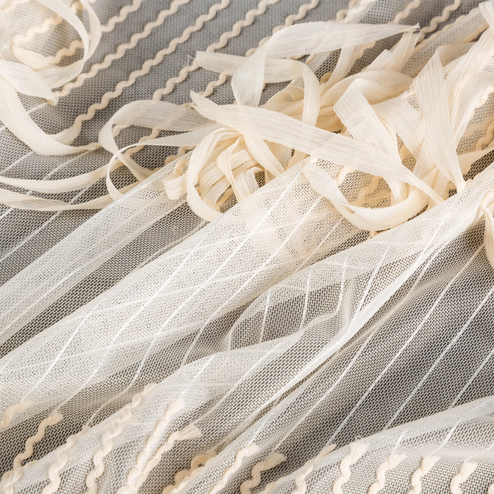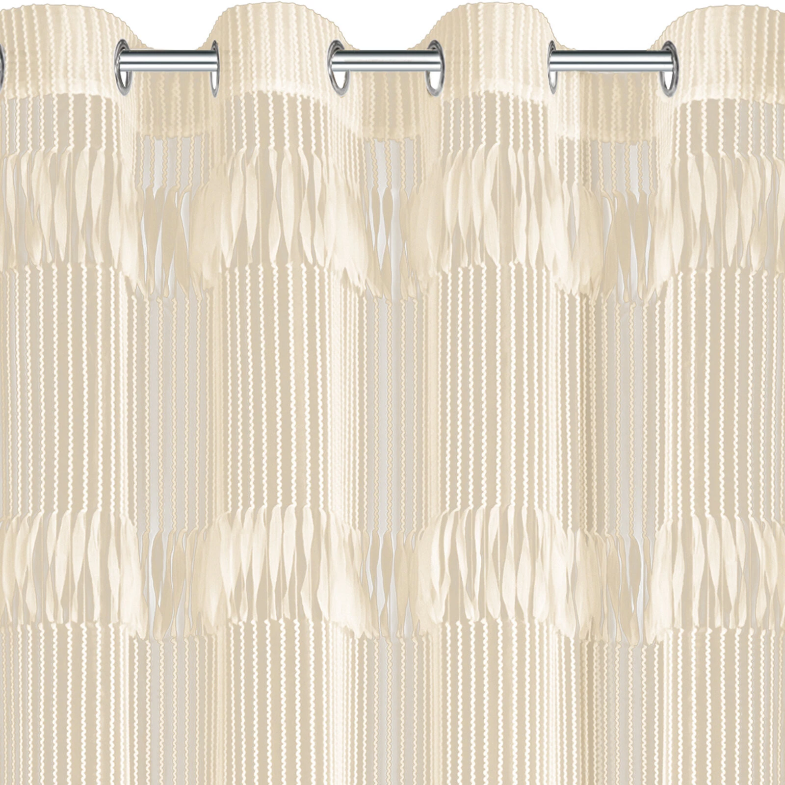 - Zasłona gotowa zdobiona frędzlami szerokość: 140 cm, długość: 250 cm, kolor: jasnobeżowy, Skład: 100% poliester
