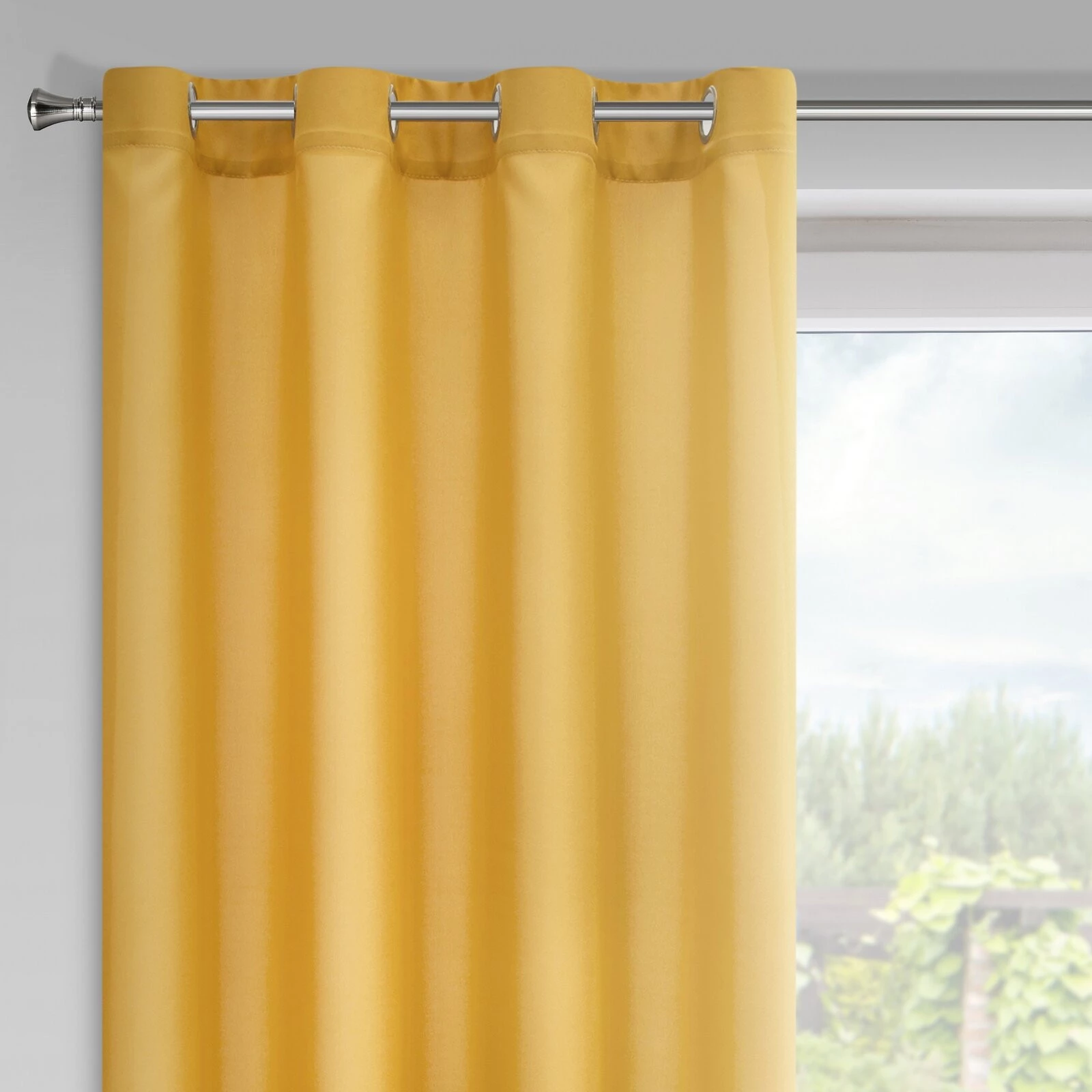 Piękna, jednokolorowa zasłona z miękkiej tkaniny o matowym wykończeniu i satynowym splocie. Uniwersalna dekoracja do każdego wnętrza. Łatwa w prasowaniu. szerokość: 140 cm, długość: 175 cm, kolor: musztardowy, Gramatura: 140 GSM, Skład: 100% poliester
