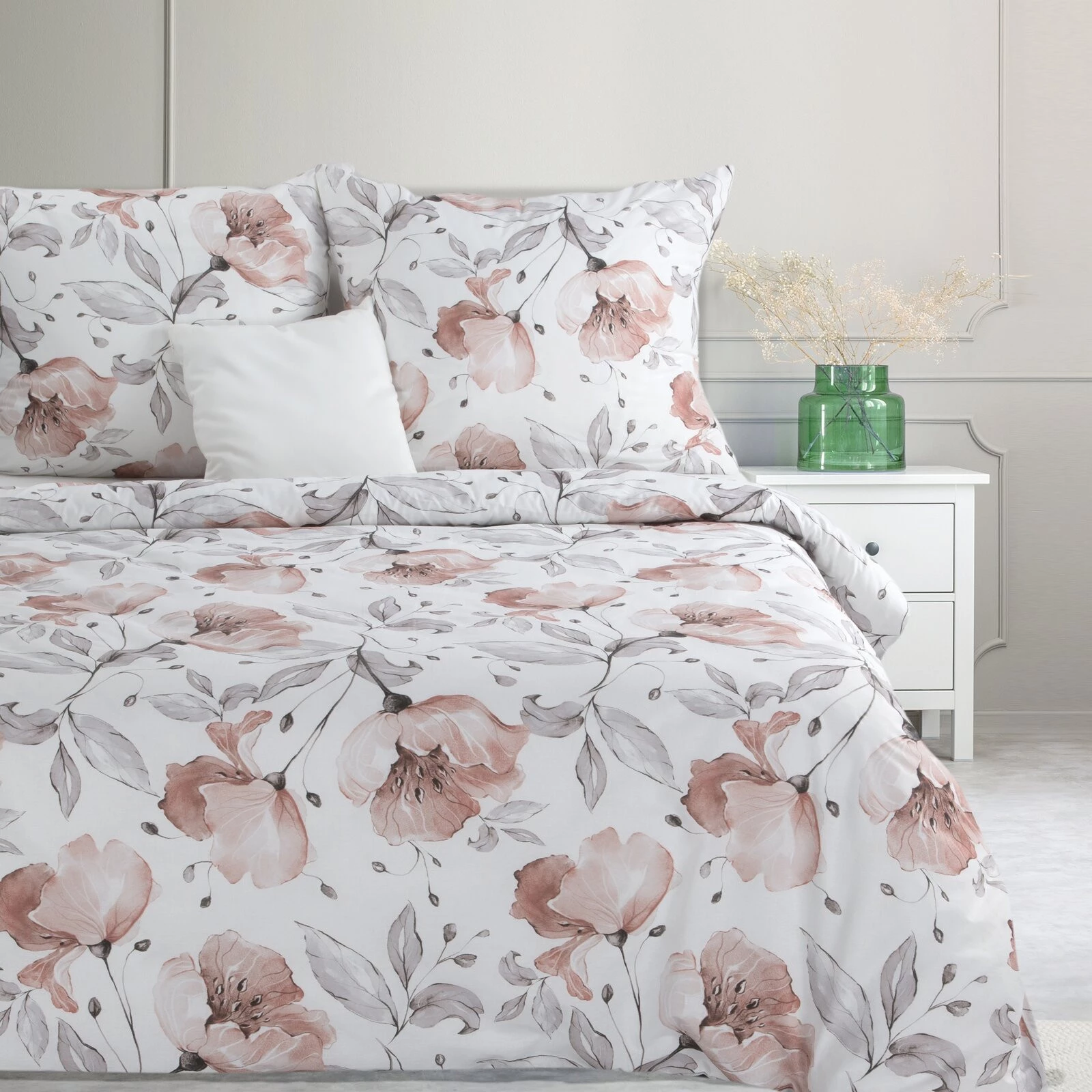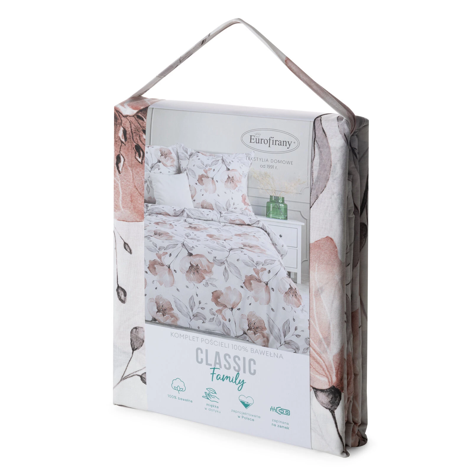 - Komplet pościeli bawełnianej z nadrukiem szerokość: 220 cm, długość: 200 cm, kolor: biały, Gramatura: 105 GSM, Skład: 100% bawełna